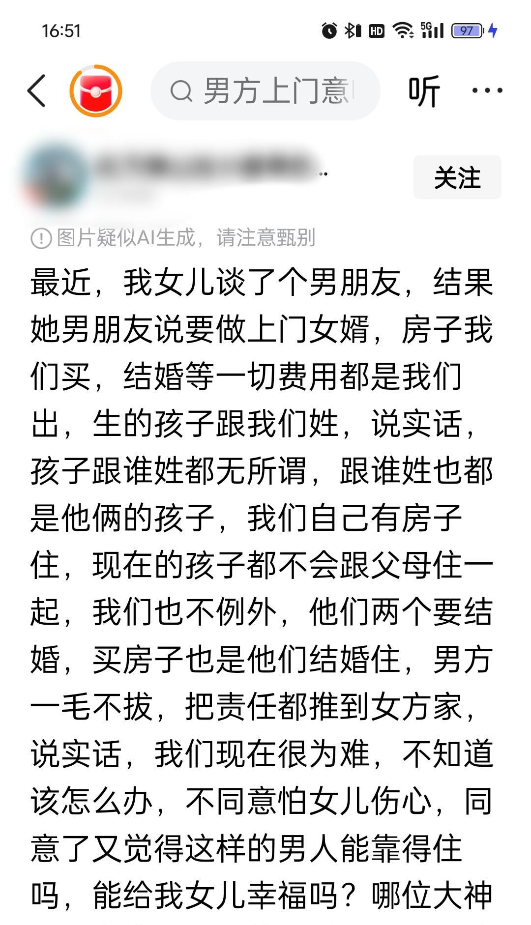 小仙女们总爱说,不给彩礼,男人白得一个孩子,给男方家传宗接代 这不,反制来了 男方主动提出愿意当上门女婿 反而女方开始衡量了 姓什么其实不重要,买房什么的才是真金白银 其实,除了个别农村男,觉得孩子姓女方姓会被别人嘲笑 大部分男人,特别是城市男,又没有族谱,又没人关心他家闲事 之所以买房出彩礼,之所以强调孩子姓他的姓,不过是习惯而已 当然,广东例外