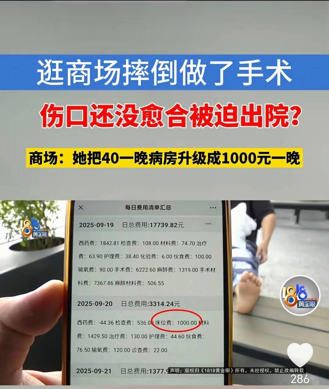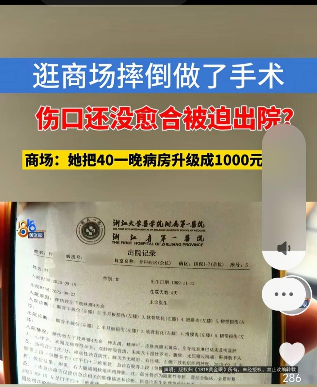 轩女士在商场摔跤后住院手术,却因住院费没结清和商场闹僵——商场称轩女士擅自把40