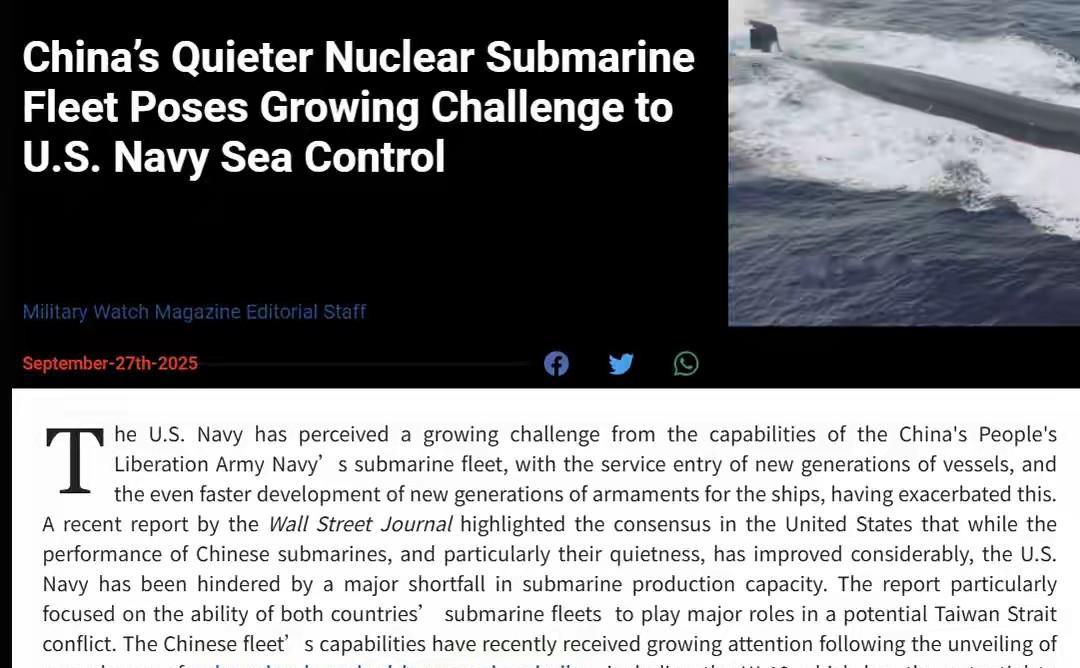 特朗普称美国核潜艇领先中俄二十五年,美国媒体有不同意见。 特朗普的论点很特殊,就是认为俄罗斯的核潜艇领先是搞宣传搞的,而中国目前最先进的核潜艇是093B,相当于美国洛杉级3水平,技术水平远低于海狼级,这仅相当于美国上世纪九十年代的技术,如此看来,特朗普的论据好像没毛病,然而,美媒却在此之前认为,093在静音、传感器及与YJ-19的组合让美军无法适应。 为什么特朗普与美媒在核潜艇上会有这么大反差呢?美国的核潜艇还是二十多年前的技术,而093B则是在电气化、信息化、高超化等条件下的产物,同样是泵喷,电气化条件下的泵喷体积更小、能效更高,更重要的是更静音,这已不是七叶螺旋桨的空泡效用的问题,而是从减震筏开始,以新型电机为核心构筑的推进系统的问题,要知道,自从中国把电玩明白后,这一领域,显有落后,其信息化,其实说的还是电,另外PL-19,涉及吸气式高超音速,这真不知道特朗普领先二十五年从何说起。 特朗普说,美国核潜艇曾多次接近中俄而不被发现,这是领先的证据之一,这个问题还真不好反驳,只记得2022年2月12日,俄罗斯太平洋舰队在千岛群岛附近进行军事演练时,发射了警告弹,随后一艘美军弗吉尼亚级核潜艇被迫在水下撤离,2021年10月2日,美国自认为天下第一的“康涅狄格”号在南海潜航时,“熟门熟路”的它把碰撞脑袋碰了个稀碎,至今还在住院。 特朗普的牛皮有时还真别当回事,还记得他吹的那个十七马赫的高超导弹吗?都六七年了,至今没影,还有那个“中俄都没听说过的武器”,也五六年了,还是没听说。 特朗普与美媒对同一类事物的论述为什么会有这么大的落差,主要还是要看他讲这话的场所,这是他在9.30日面对美国近千名将军的讲话,这场合不适合谈五代机、六代机,更不能谈驱逐舰、电磁弹射,好在在核潜艇领域确还有数量、战术、经验等上的优势,不谈它谈谁?而美媒只是就事论事,从093B上看到了095、096罢了。