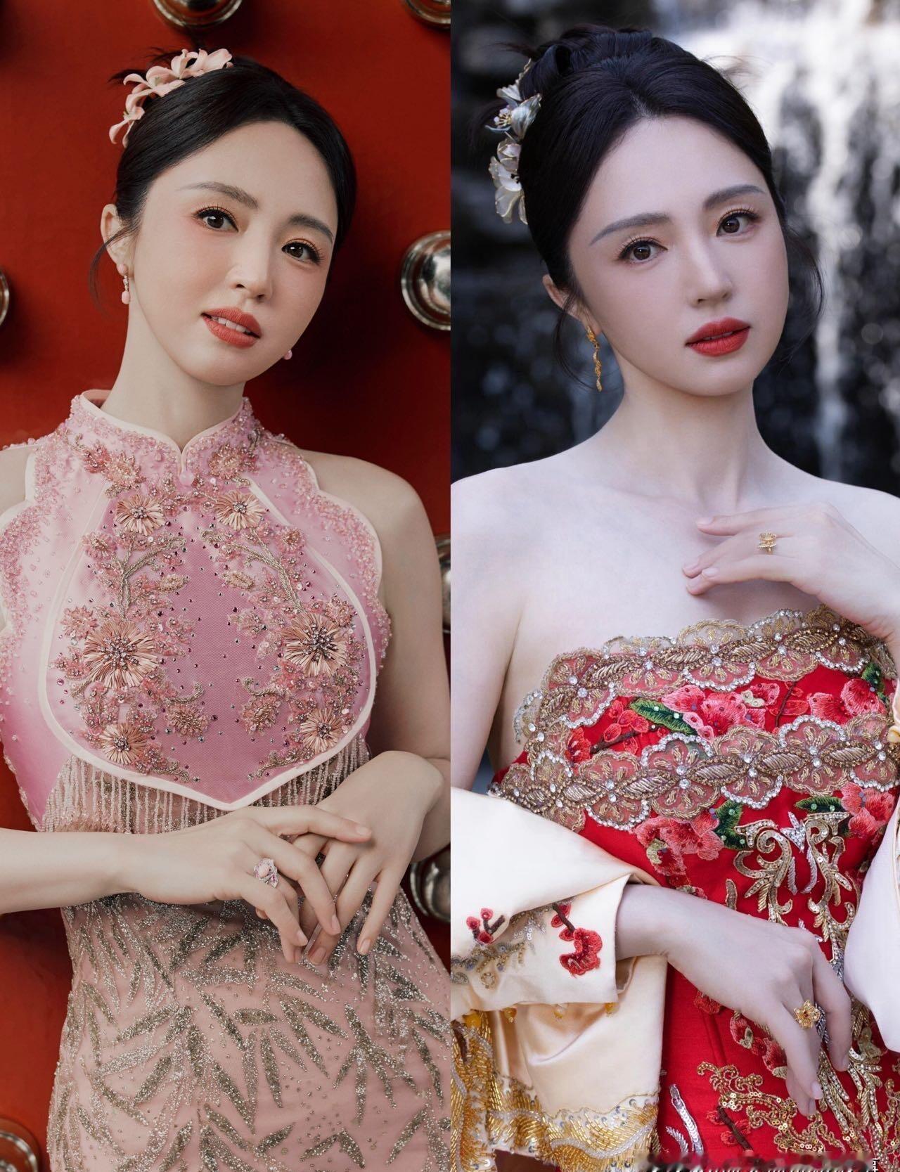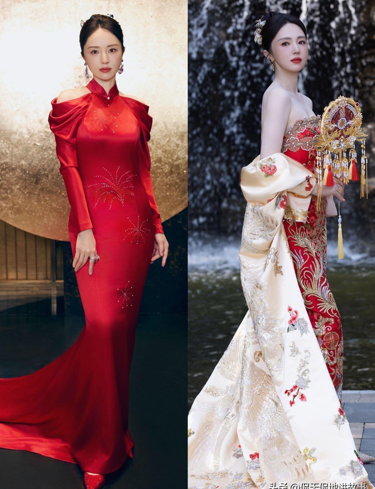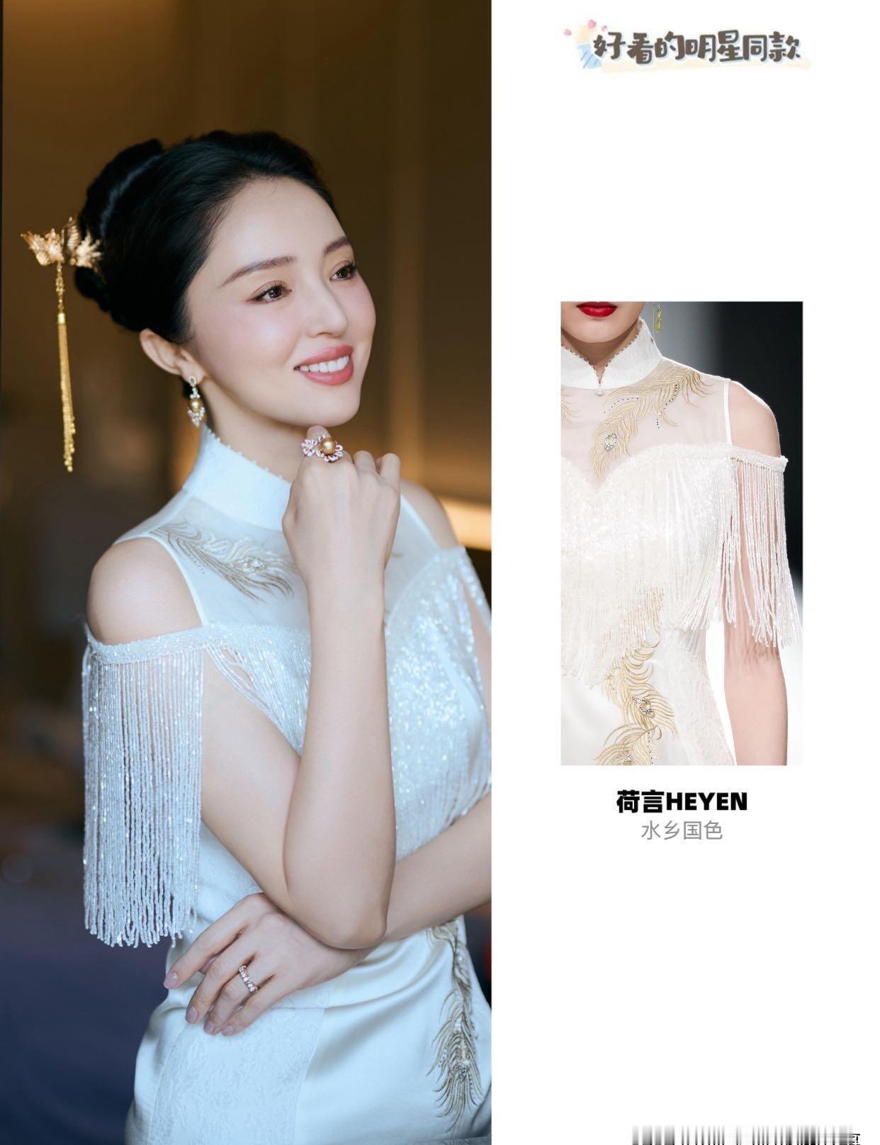 “龙”直接爬上腰,380小时手针把“璇”字锁进鳞片,董璇一转身,裙摆弹回真丝,把红毯掀出2.4亿播放。 网友炸锅:“这哪是礼服,是翡翠柜! ”——她腕里那只老坑冰种,市价120万,闪光灯一扫,绿得晃眼。 盖娅传说后台秒涨18万粉,某宝连夜挂链接,搜索飙670%。 三天后,北京服装学院把这条“龙潜”收进民族馆,学院派一句点评:新中式教学范本。 董璇方顺势放风:下一步跟苏绣非遗合作,品牌方补刀:轻奢成衣5800起,龙鳞给你搬回家。