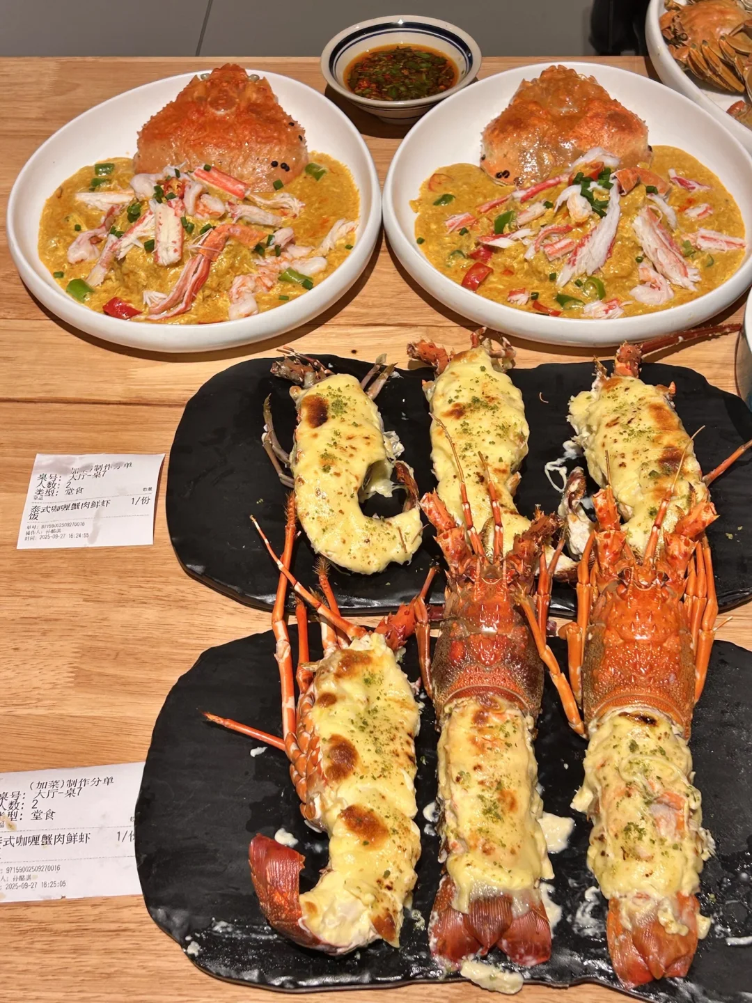 口碑好好!我们到的时候都坐满了😅😅 无花果鸡煲🐔汤鲜味美,清蒸大闸蟹个头饱满,满黄满膏好爱!蛋黄焗梭子蟹、黄油芝士焗小青龙奶香十足又鲜甜,泰式咖喱蟹肉鲜虾饭拌匀嘎嘎香,吃到大满足!杭州杭州探店灵感笔记宝宝辅食
