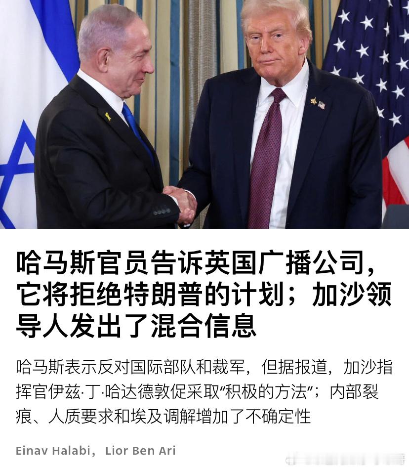 媒体称,哈马斯不想解除武装,也不想阿拉伯联军进入加沙维持秩序。要是这样,以色列还要用武力解决问题。特朗普20点计划海外新鲜事