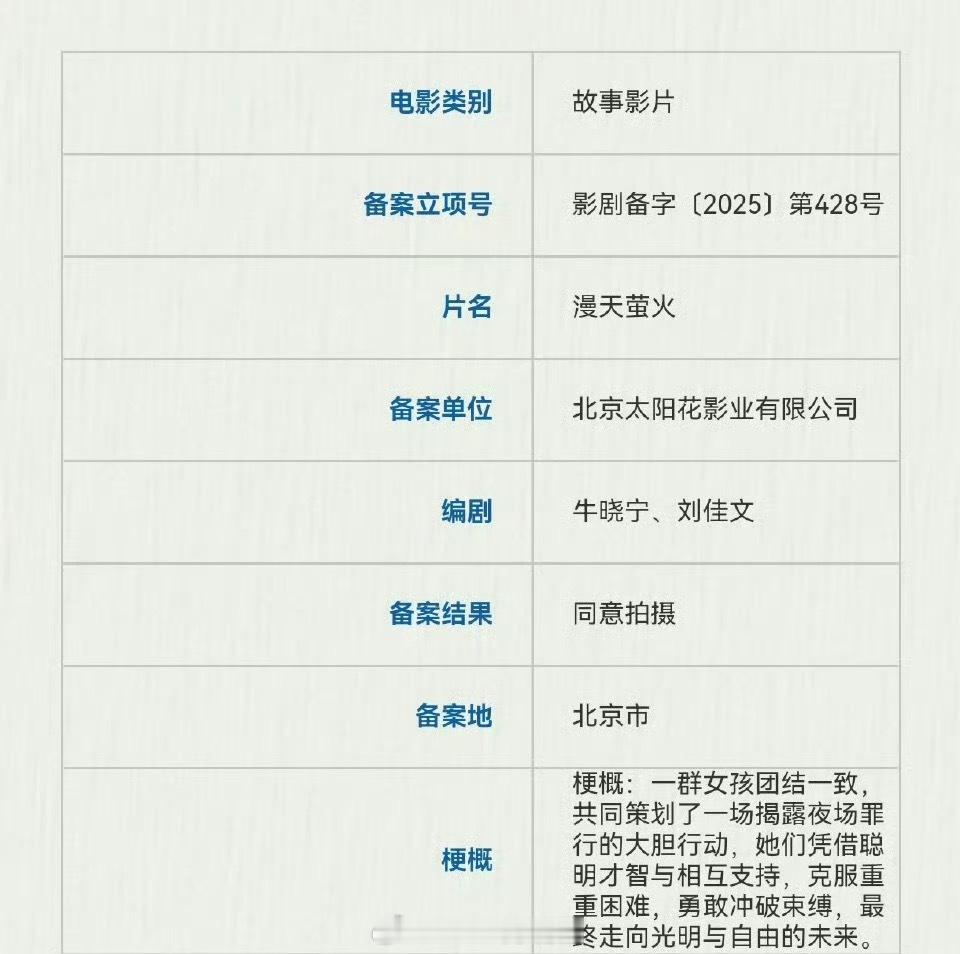 电影《野火》 金晨、张钧甯双女主戏导演:牛晓宁《满江红》副导编剧:李萌《第二十条