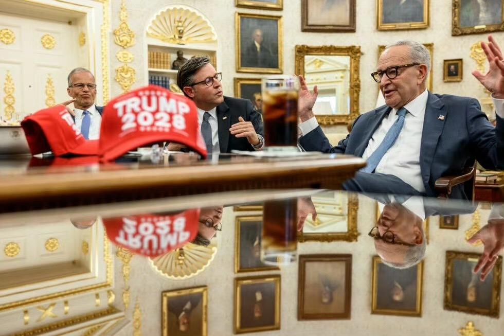 妈呀! 真是吃着碗里的,还看着锅里的。 特朗普总统椭圆形办公室里,“TRUMP 2028”的帽子已经摆出来了,他对民主党领袖人物舒默、哈基姆·杰弗里斯说: “可以先预定一下2028嘛!” 特朗普是不是想的有点远了?这才干了200多天,白宫已经停摆关门了。 还是多锻炼锻炼身体,多打打高尔夫球吧,毕竟80岁了,2028年还早呢。