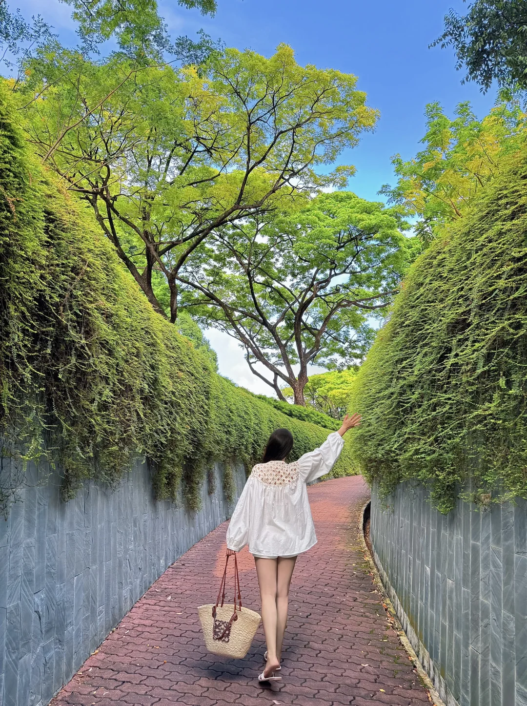 🍃就像走进了绿野仙踪林 🍃去网红树洞:google map 导航 Fort Canning Tree Tunnel 👉🏻如果想拍照的话,早上9:00前去人会少一些。我没有排队拍照,发现旁边的小道也非常好看哦! . 福康宁公园是由很多小Garden组合在一起的大 Garden,绿植覆盖的天然氧吧,可以留两到3小时,走走停停会发现很多好看的地方,超级治愈~