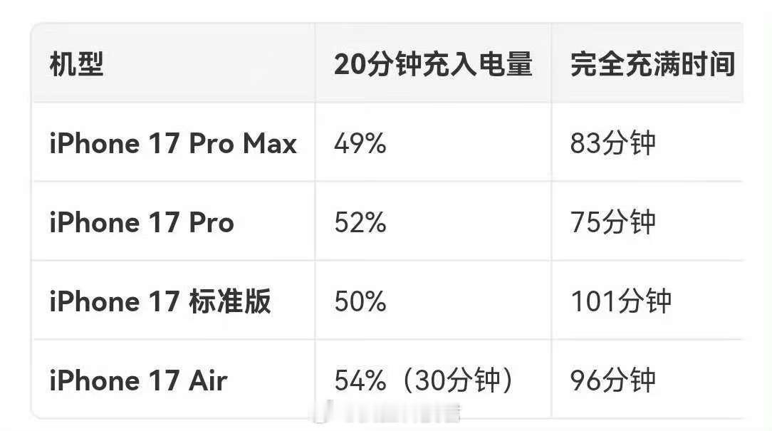 要我说,要是就图个新鲜、喜欢它超薄的机身,那你就得接受它这“慢羊羊”式的充电。但要是平时赶时间,对充电速度有要求,那还是劝你再想想,不然出门得随身揣个充电宝,那超薄的优势不就白瞎了嘛!iPhoneAir充电速度17系列中垫底