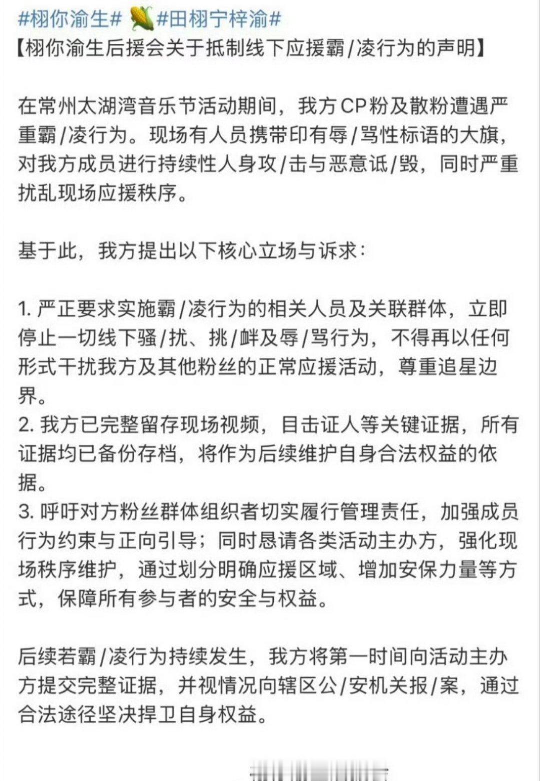 梓渝跟田栩宁的CP粉栩你渝生官方后援会发声明