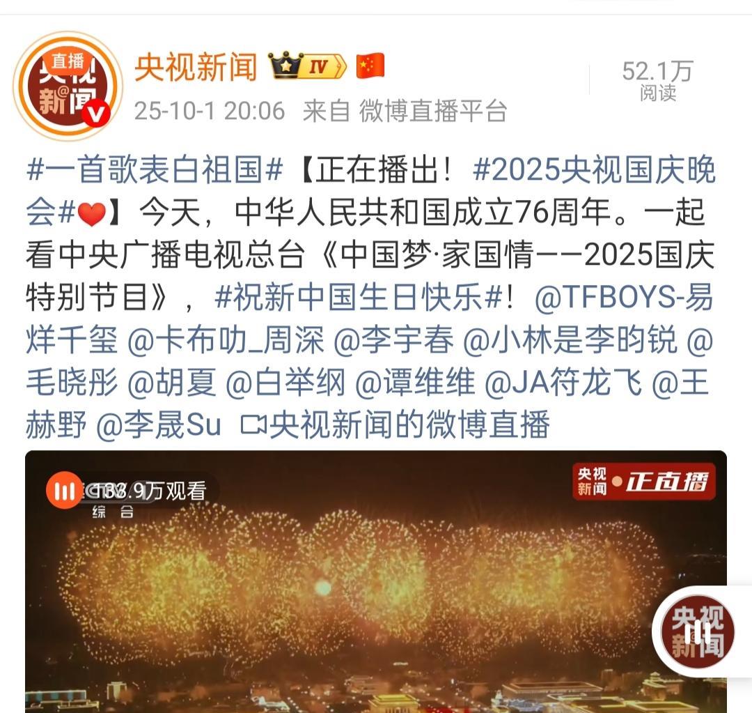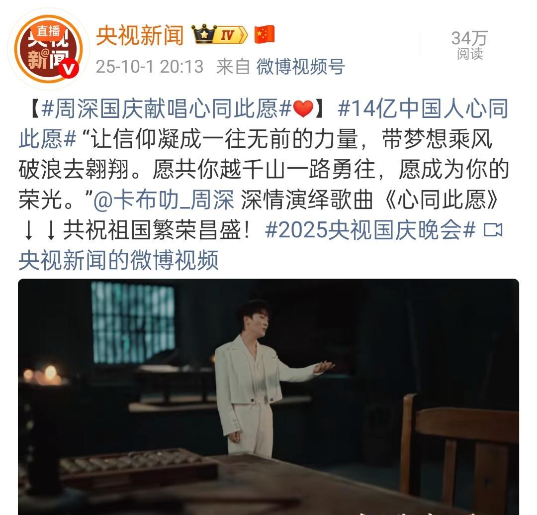 周深到底悄悄做了多少饭! 今天早上突然降落一首新歌《万里晴空》,是中央广播电视总台央视频携手青年歌手周深共同推出国庆青春心愿主题曲! 之前一点预告都没有看到,去年一首《心同此愿》,今年一首《万里晴空》,成国庆固定节目了啊! 晚上,在国庆晚会上突然一首新录制的《心同此愿》舞台! 今天看到很多官方媒体发国庆视频用的BGM是周深的歌,比如《今天是你的生日,中国》,还有《心同此愿》《有我》 ,还有今天的新歌《万里晴空》! #周深#