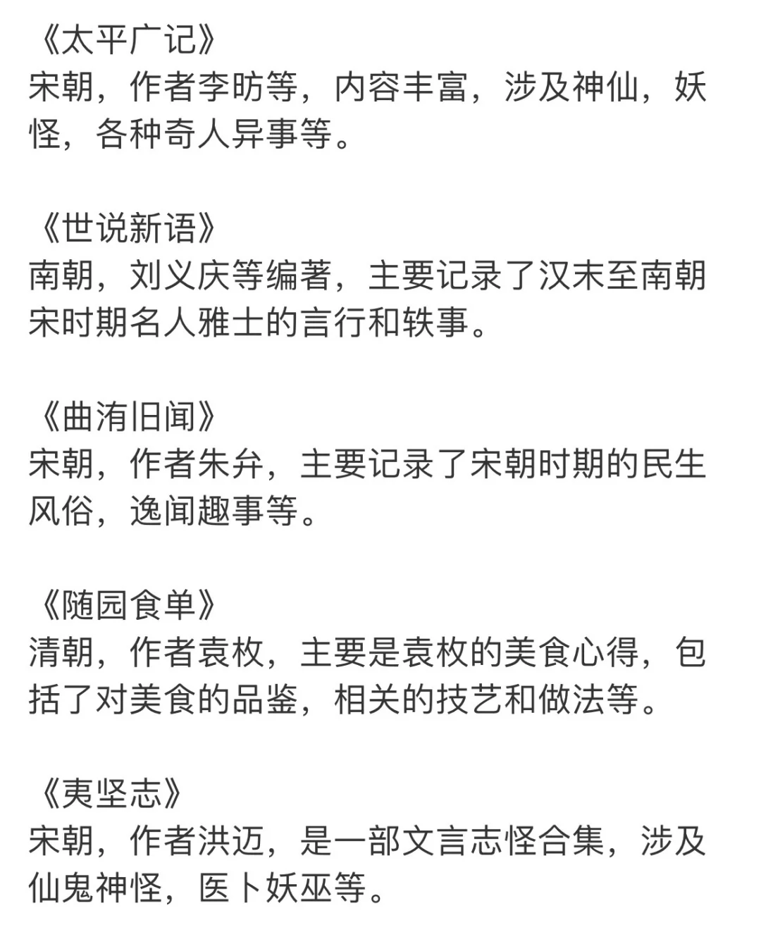 南朝,刘义庆等编著,主要记录了汉末至南朝宋时期名人雅士的言行和轶事。