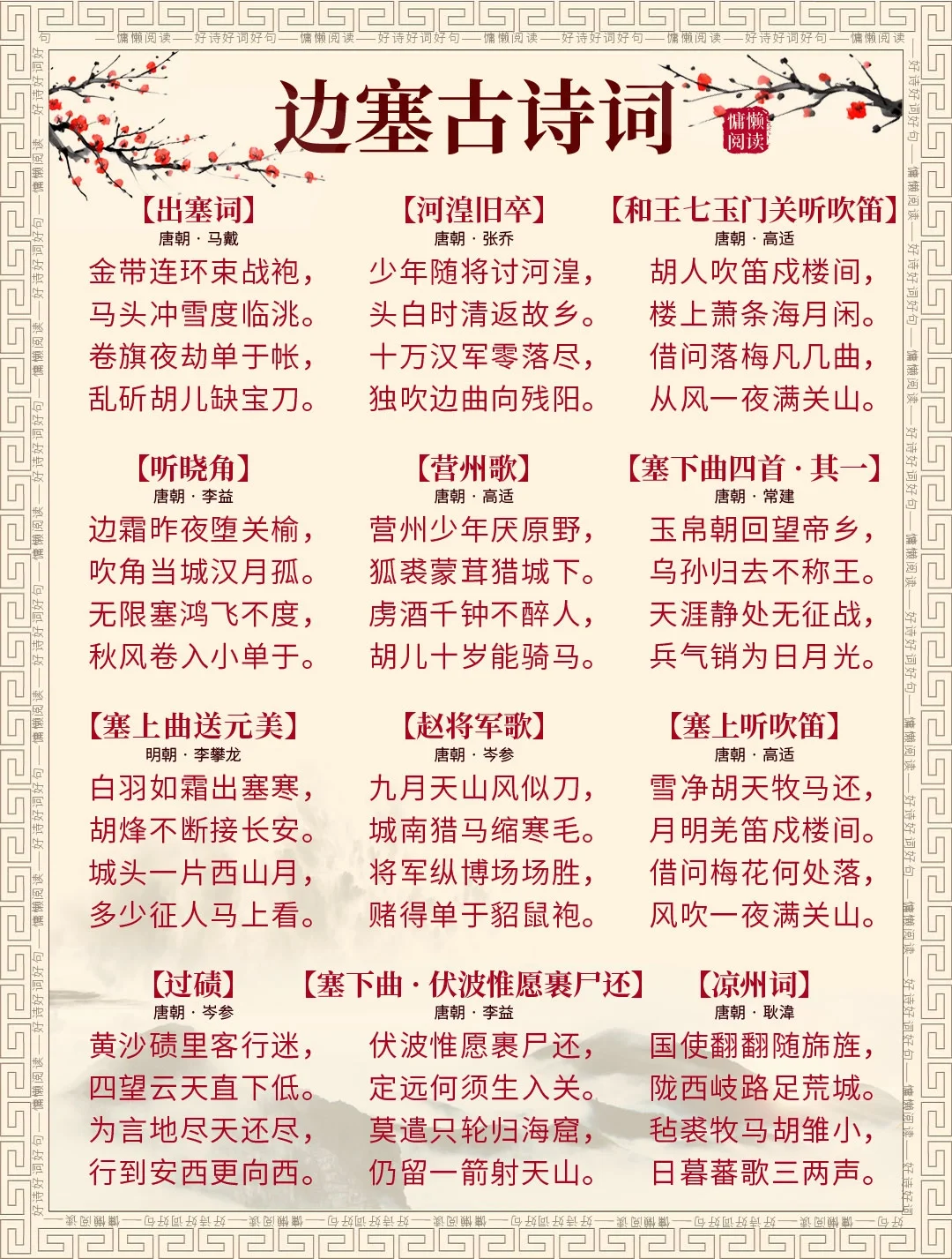 让孩子爱上古诗词 古诗文 每日古诗打卡 古诗背诵 历史文化 启蒙 文化 唐诗 边塞诗 小学生必背古诗 古诗