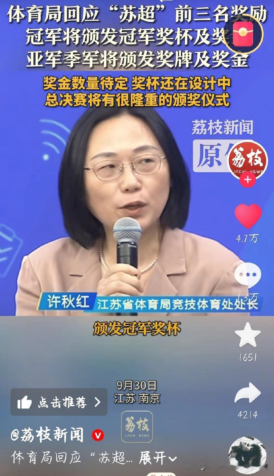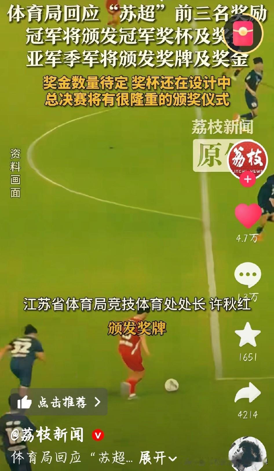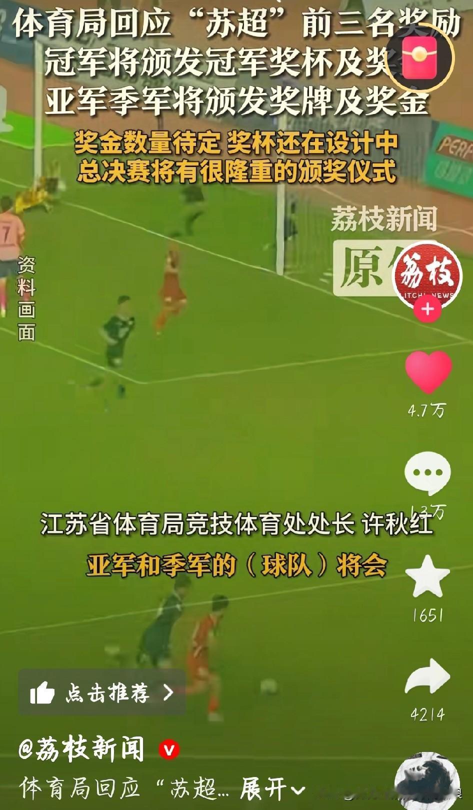 火到出圈的“苏超”,大家最关心的奖励终于有信儿了!体育局直接回应,前三名都有实在
