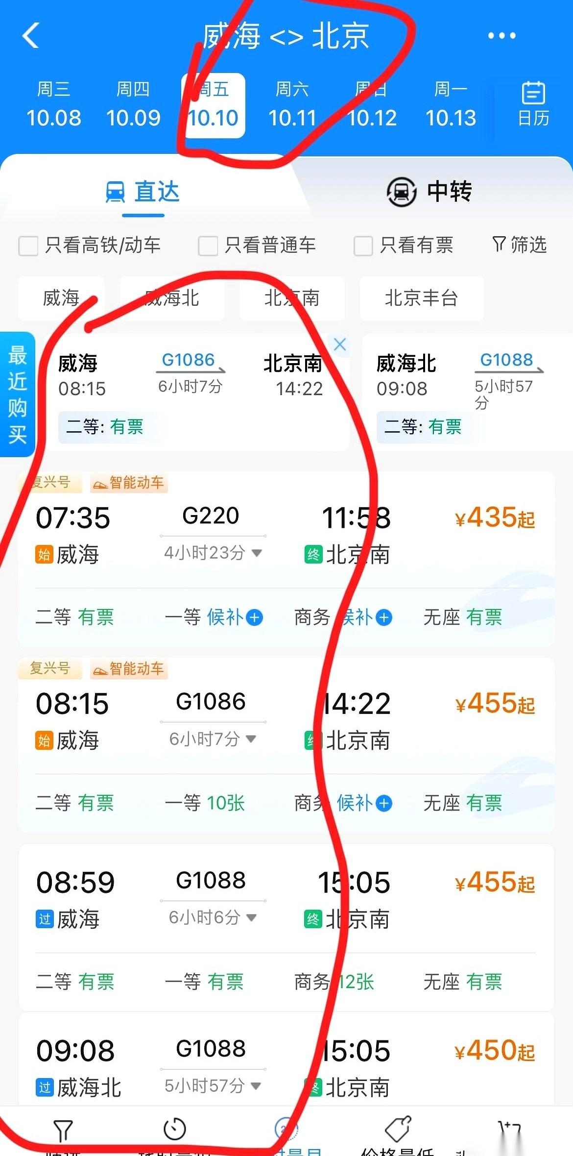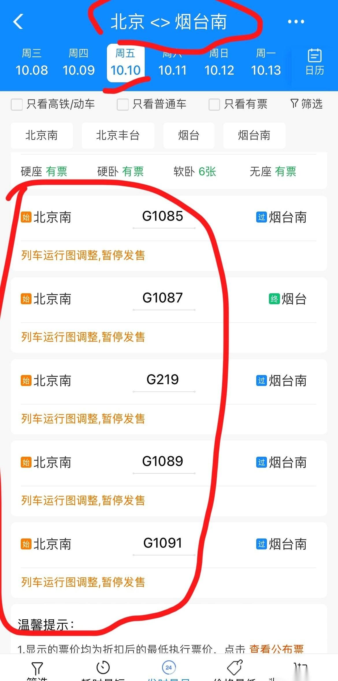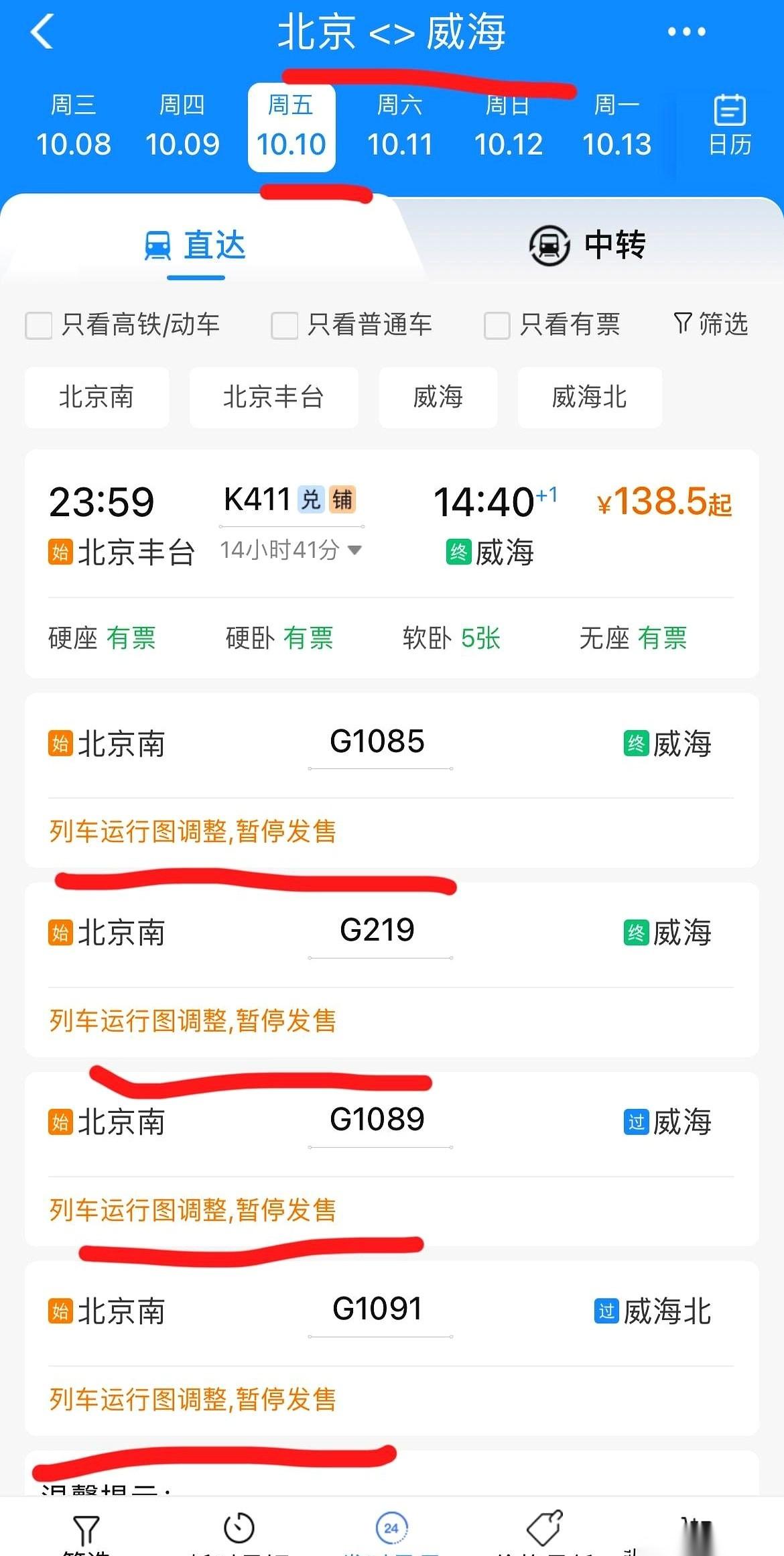 十一假期刚过,北京到威海、烟台的高铁,没了。 一趟都没了。直接给你清零。 我真服了这操作。节前,知道北京人要去海边“下饺子”,那票卖得叫一个火热,生怕把你送不过去。 假期一结束,人也玩够了,钱也花完了,好,北京想回烟台威海的乡亲们,你们先等等。 官方说法是:运行图调整。 就特别精准,只“调整”北京出去的这两条线。去青岛的照样跑,从威海烟台回北京的也一趟不少。 你说这叫什么事儿…… 节后还想从北京回家的人,直接傻眼了。天天刷票,刷出来的都是“暂无列车”。 这感觉就像,饭店办了个盛大酒席,把你请进来吃好喝好,等你一走,直接把大门给拆了。跟还没吃完的客人说:哎,我们装修。 这波操作,真是教科书级别的精明。 就是苦了想回家的人。