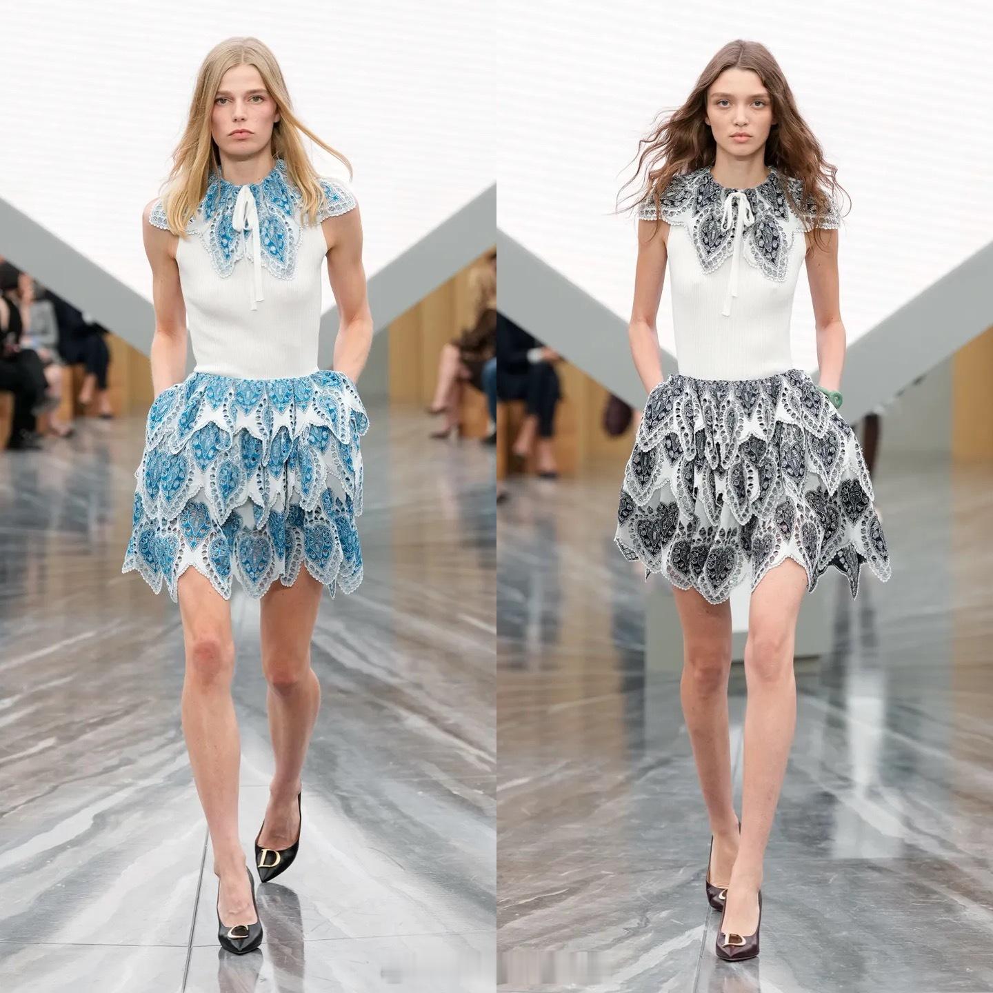 这一季对迪奥女性主义的诠释令人惊艳。设计巧妙平衡品牌传承与当代需求,既保留了New Look标志性的收腰廓形,又通过立体剪裁为现代女性赋予更多活动自由。那些柔美与力量兼具的设计,仿佛在诉说当代女性多面向的身份转换——她可以是华丽的、灵动的,也可以是庄重的、甜美的,每种状态都自如流转。
