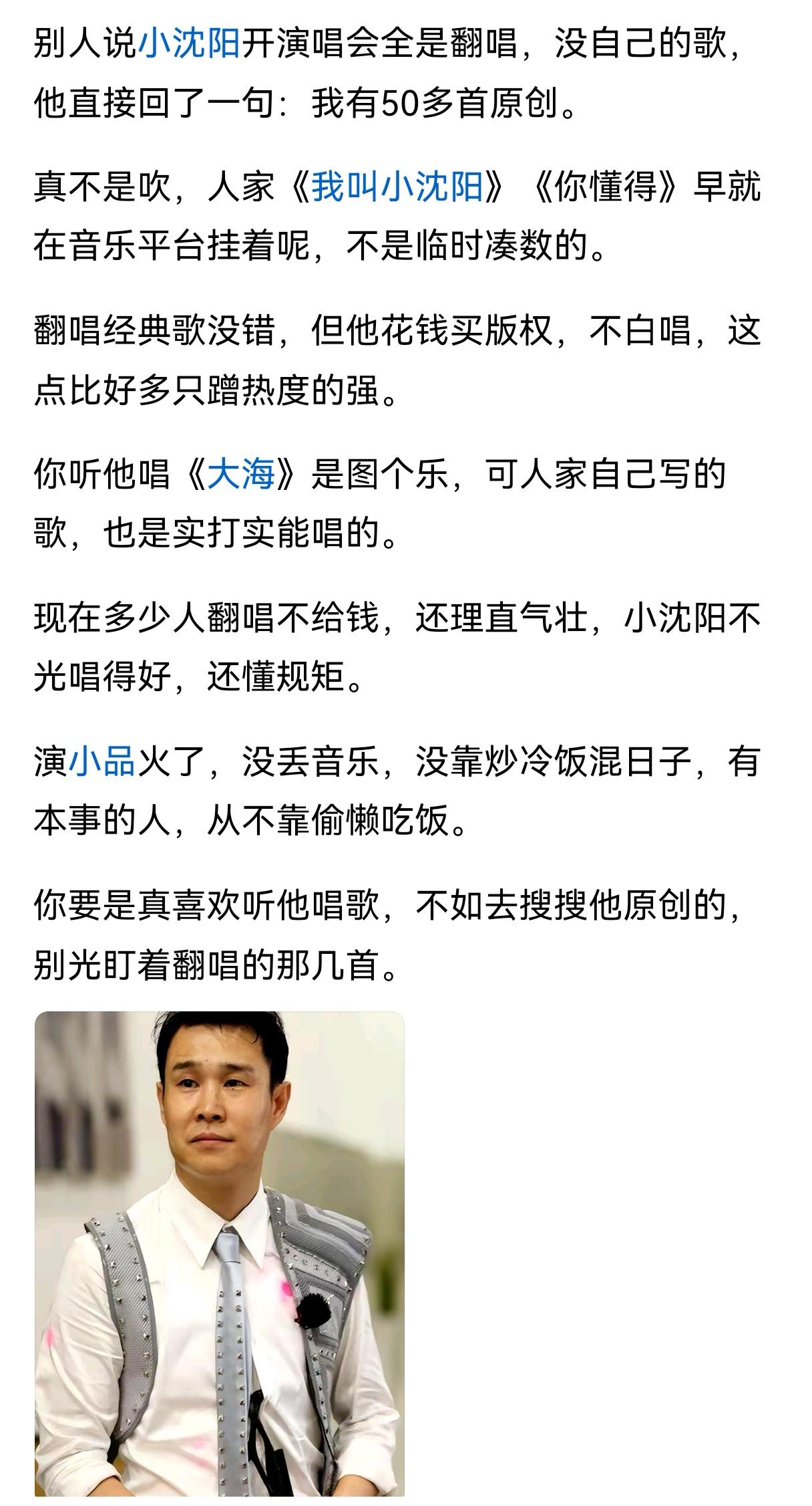小沈阳:努力是努力,但过去的标签太亮眼了 小沈阳唱歌,充其量也就是大衣哥的水平,难登高雅之堂,演二人转才是他发光的地方。深耕小品还能做出自己的特色,在歌坛只能打酱油。