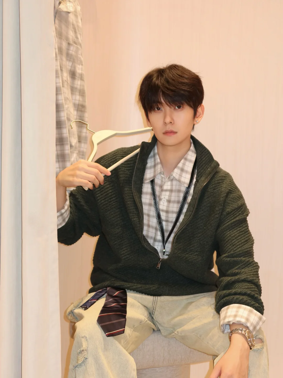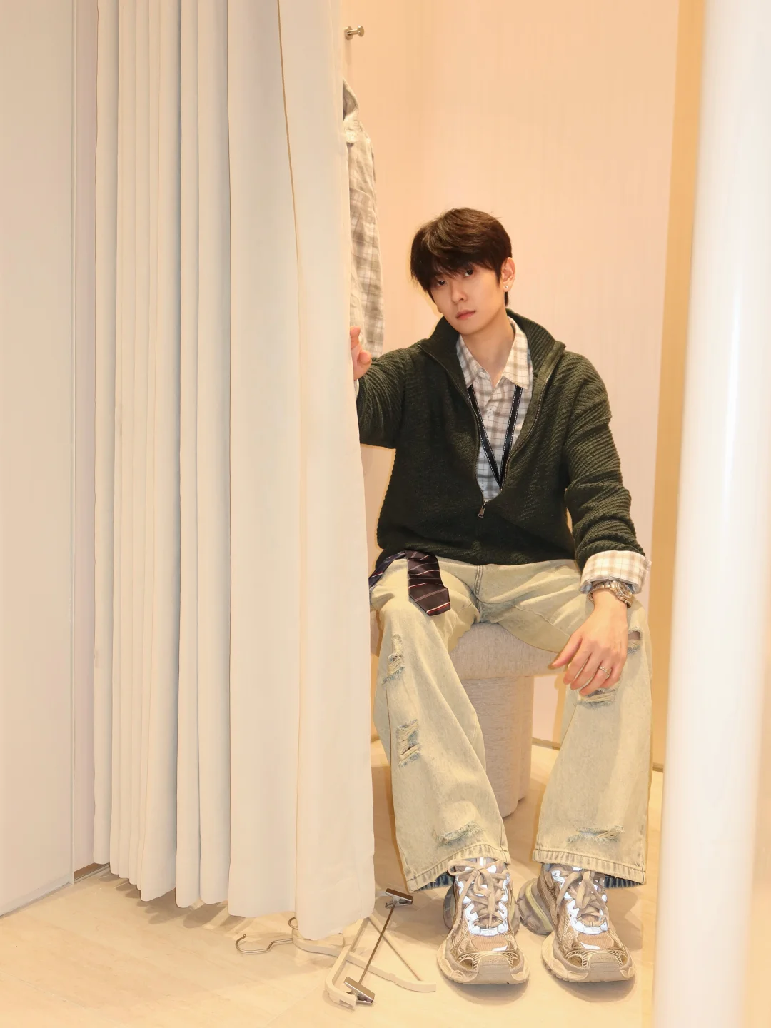 搭配了浅灰色的格纹衬衫 将高智感发挥得更好