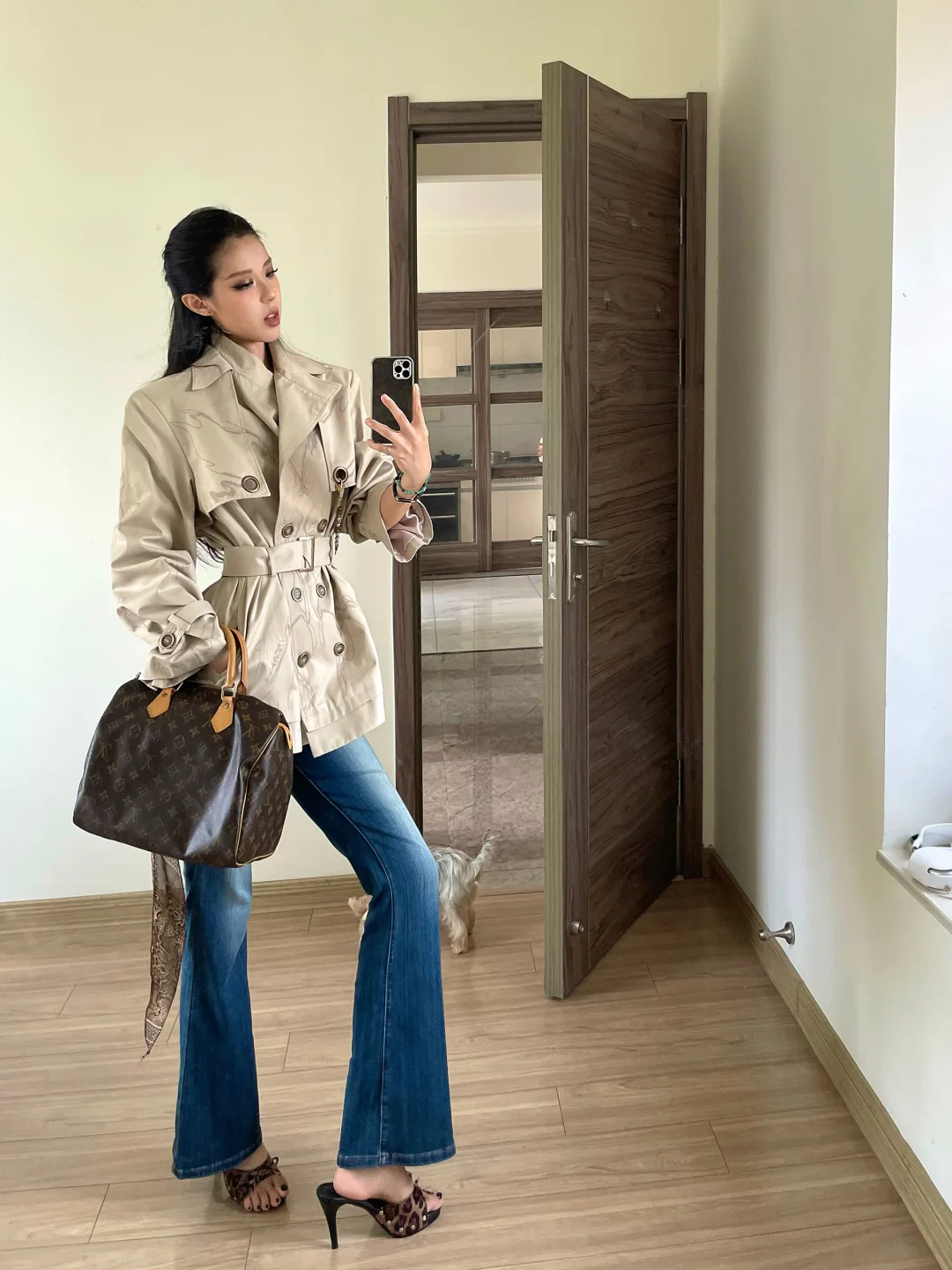 看了46岁殷桃的穿搭,我悟了:灰色不配亮色、白色,才更时髦减龄