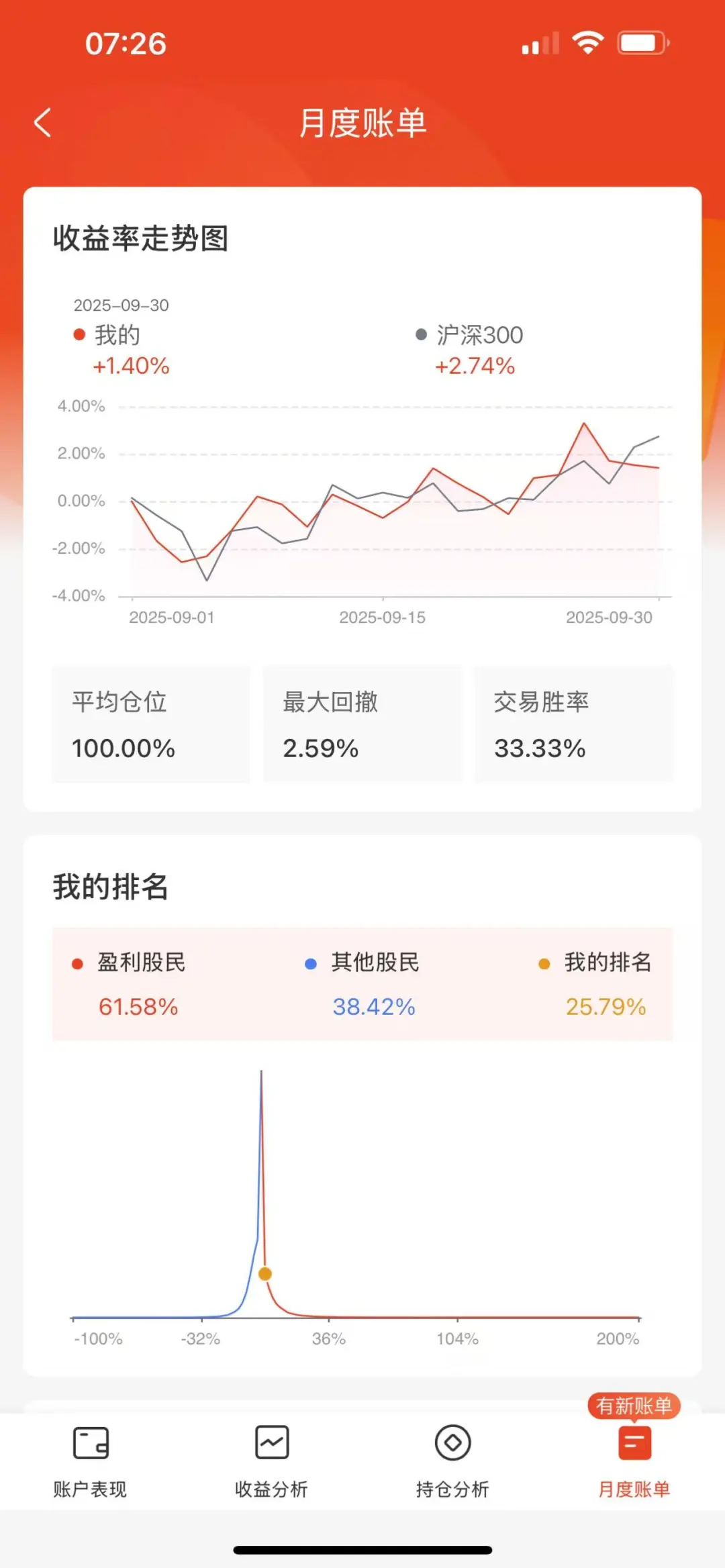 这个月市场涨了24点,又经历了比较猛烈的下跌,我也很忐忑,结果一看排名感觉还不错,红盘收。