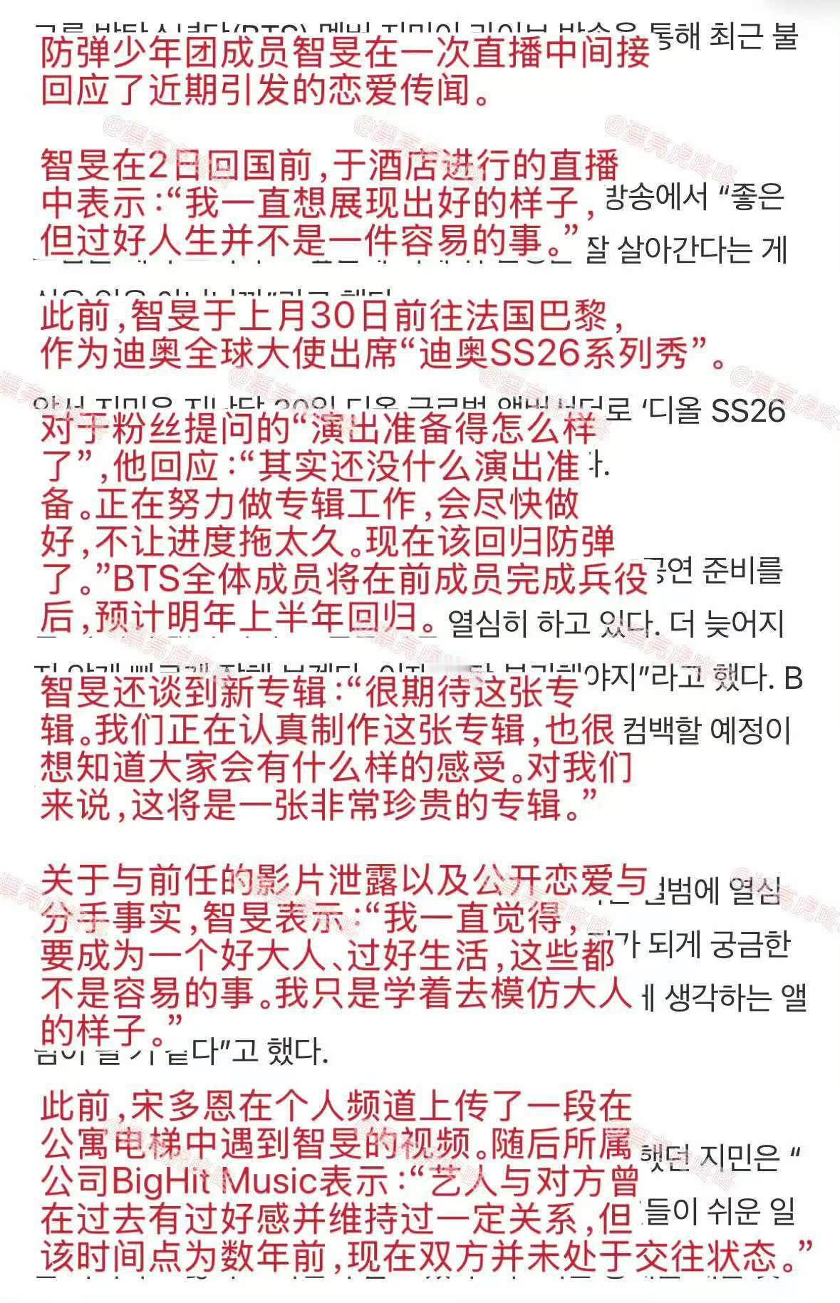 BTS朴智旻风波后首次回应BTS朴智旻宋多恩风波后回应BTS朴智旻风波后首次回应