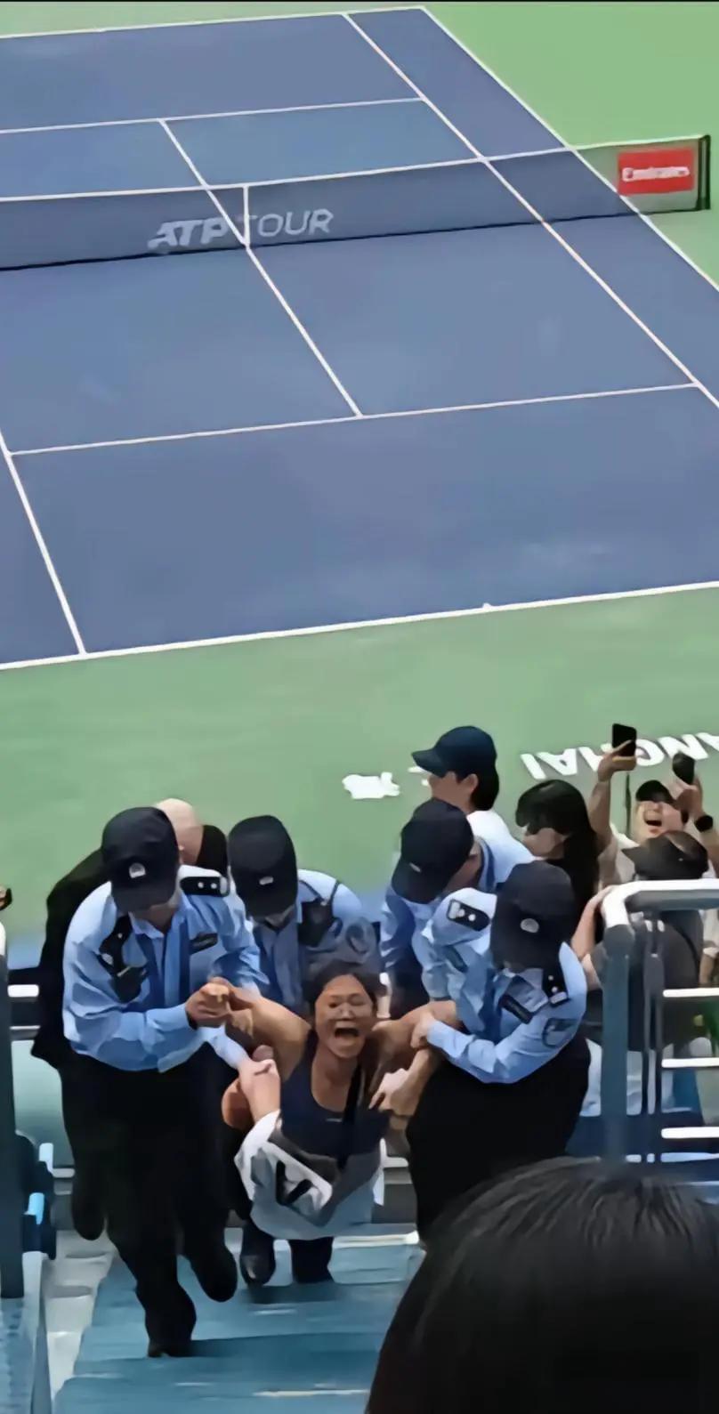 不管你们是那国人,在我华夏就得守我们的规矩 上海网球赛现场,一名女子竟当着全场观众的面掏出护照大喊:“外国人不用守中国的规矩!”警察直接把她抬离现场,全场竟响起一片掌声! 这女的可不是一时冲动,警方通报里写得明明白白,她叫谢某某,今年46岁。事发当天是10月1日,上海ATP1000网球大师赛正在旗忠网球中心进行,她带着个混血小男孩坐在观众席里。 比赛正紧张呢,她突然开始持续尖叫,球员发球时喊,得分时也喊,直接把比赛搅得暂停了好几次。裁判通过广播警告她,身边的安保人员也不停示意安静,可她半点不听。 更过分的是,见安保要上前,她猛地掏出本证件挥舞,后来才知道那是她儿子的瑞典护照。对着警察叫嚣“外国人不用守中国规矩”,那嚣张劲儿,连身边的小男孩都看不过去,拉着她衣角劝她别闹。 她大概是觉得揣着本外籍护照就有了“免罪金牌”,可忘了赛事组委会早就发过《文明观赛指南》,明确禁止比赛时大声喧哗。更别说中国的法律从不含糊,《治安管理处罚法》里写着,扰乱大型体育活动秩序,严重的能拘留10天。 警察也是耐着性子劝了好几次,见她越闹越凶,才先把无辜的孩子抱到一边,然后几个人合力把她抬了出去。这处置够有分寸了,既维护了秩序,也没让孩子受惊吓。 事后警方连夜通报,给了她行政处罚,赛事组委会更直接把她拉进了黑名单,以后再也不能进旗忠网球中心看比赛。这结果太解气了,哪有身处中国地盘,还敢拿外籍身份当特权的道理? 有些人就是骨子里的崇洋媚外,觉得沾点“外籍”边就高人一等,却忘了最基本的:不管是中国人还是外国人,守规矩都是底线。全场的掌声就是态度,没人惯着这种离谱的毛病。 各位读者你们怎么看?欢迎在评论区讨论。