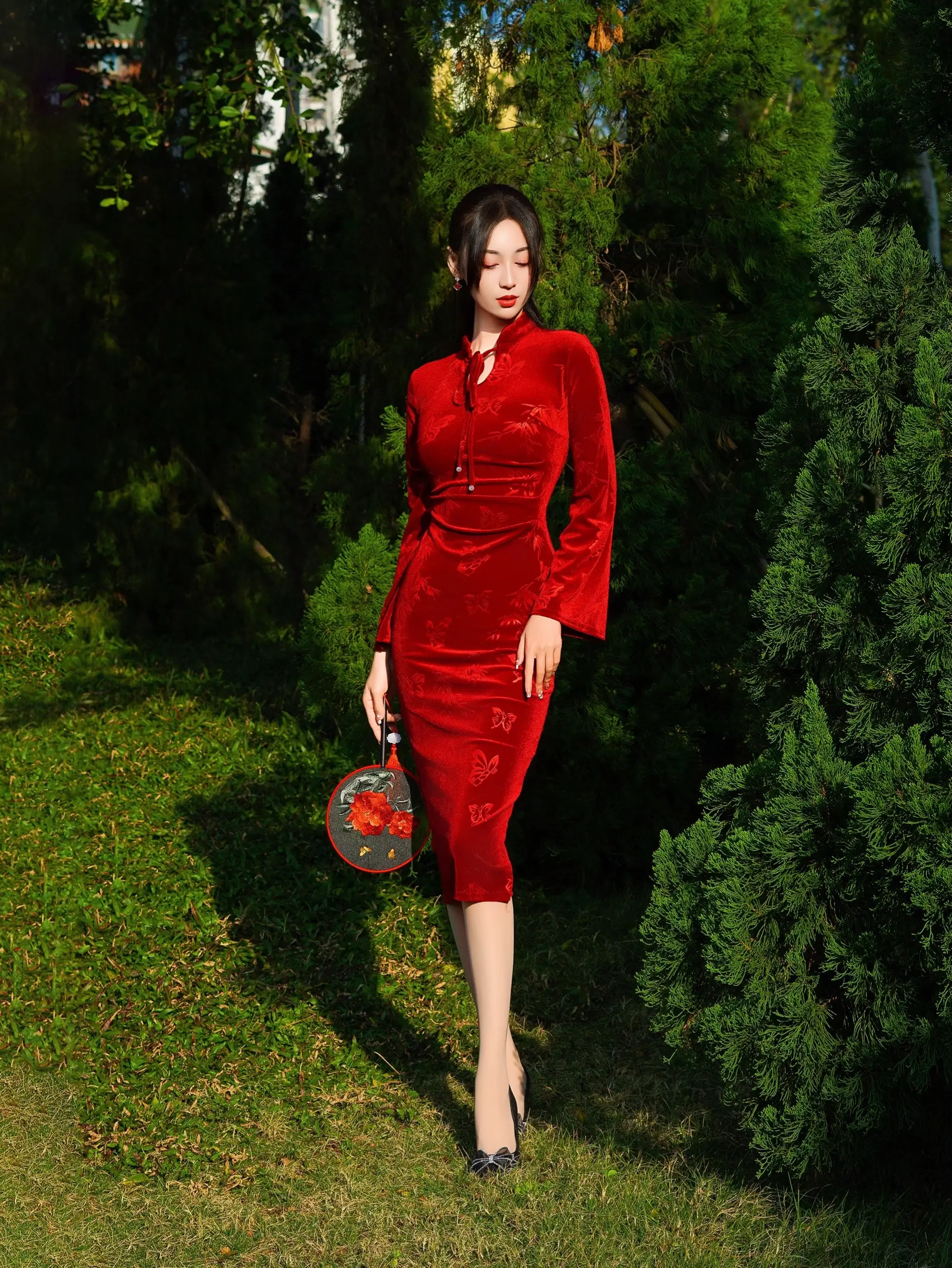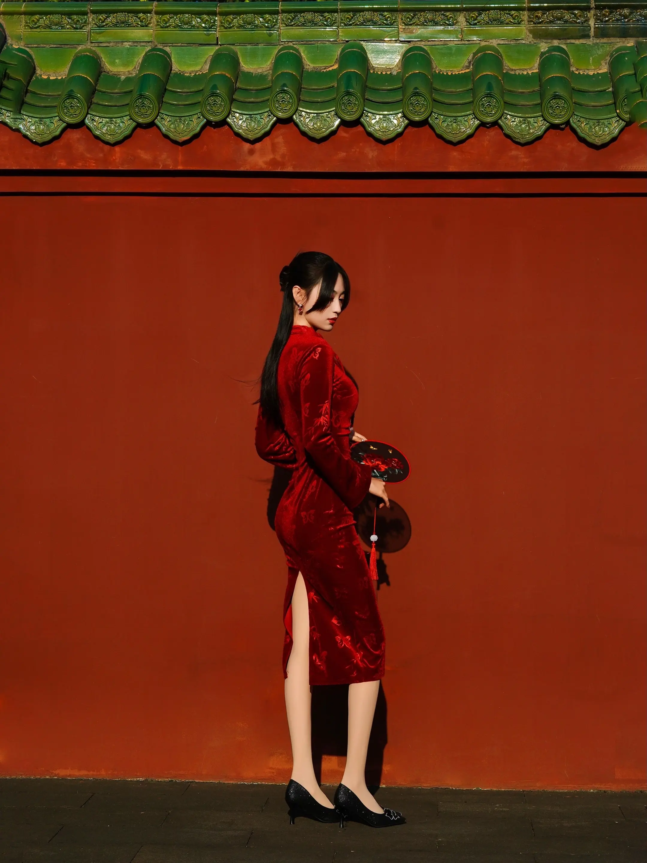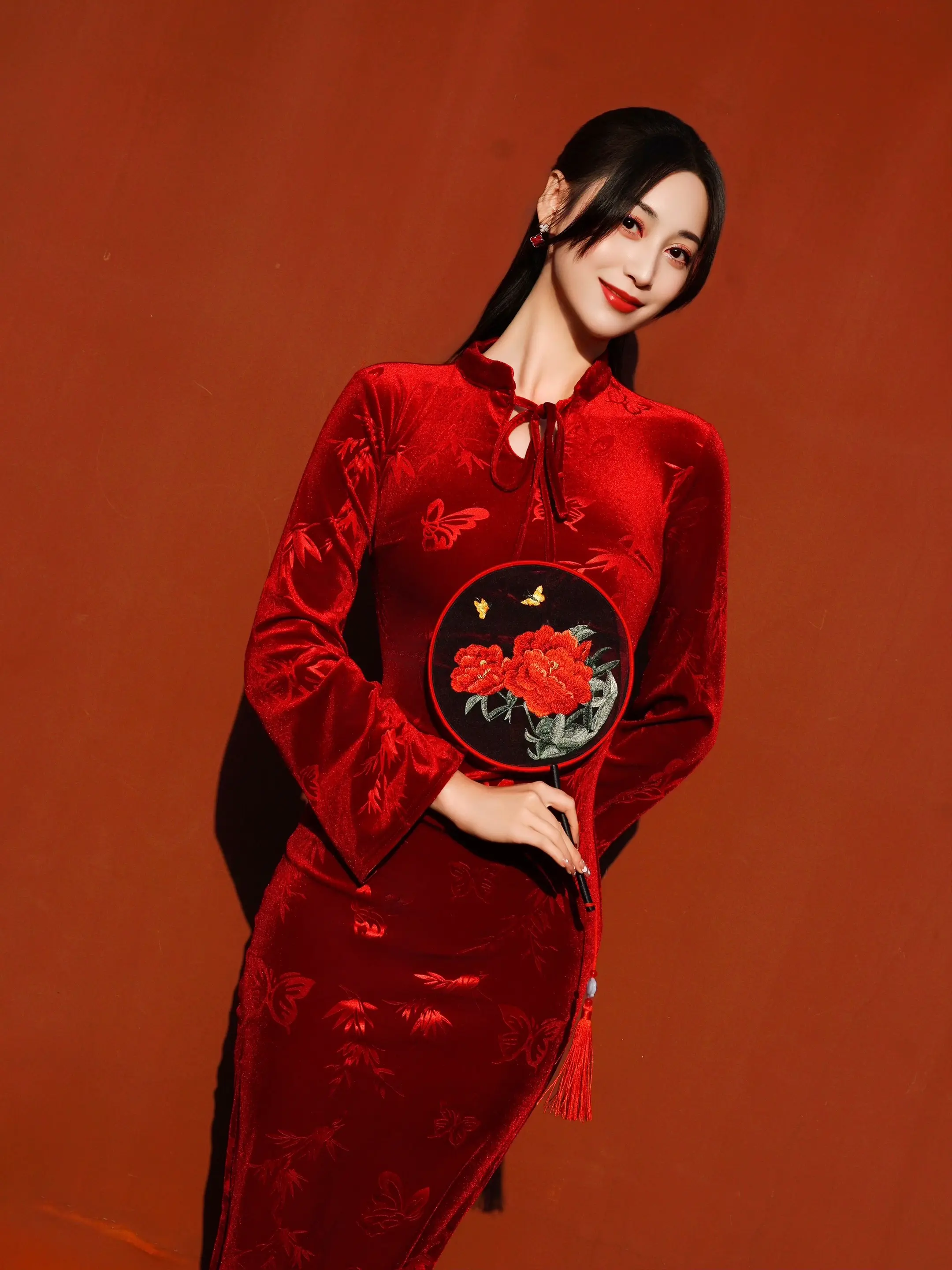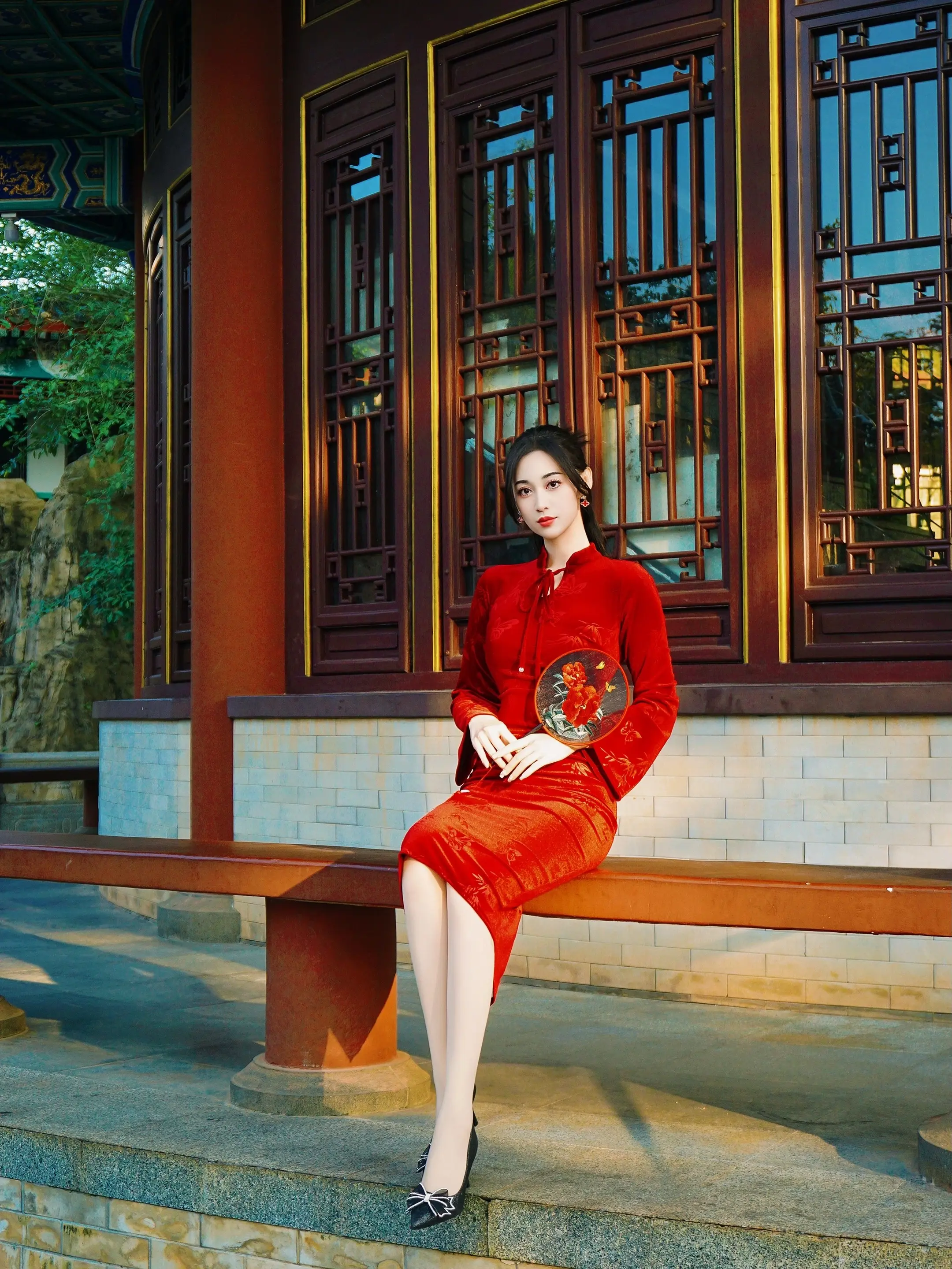 红色迎国庆.华流才是顶流。丝绒缎面 牡丹团扇 新中式 中国红 雍容华贵 端庄 优雅 大方 惹人怜 打卡红墙绿瓦海口小天坛