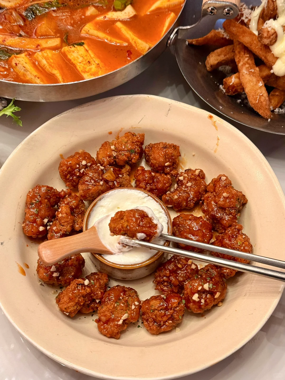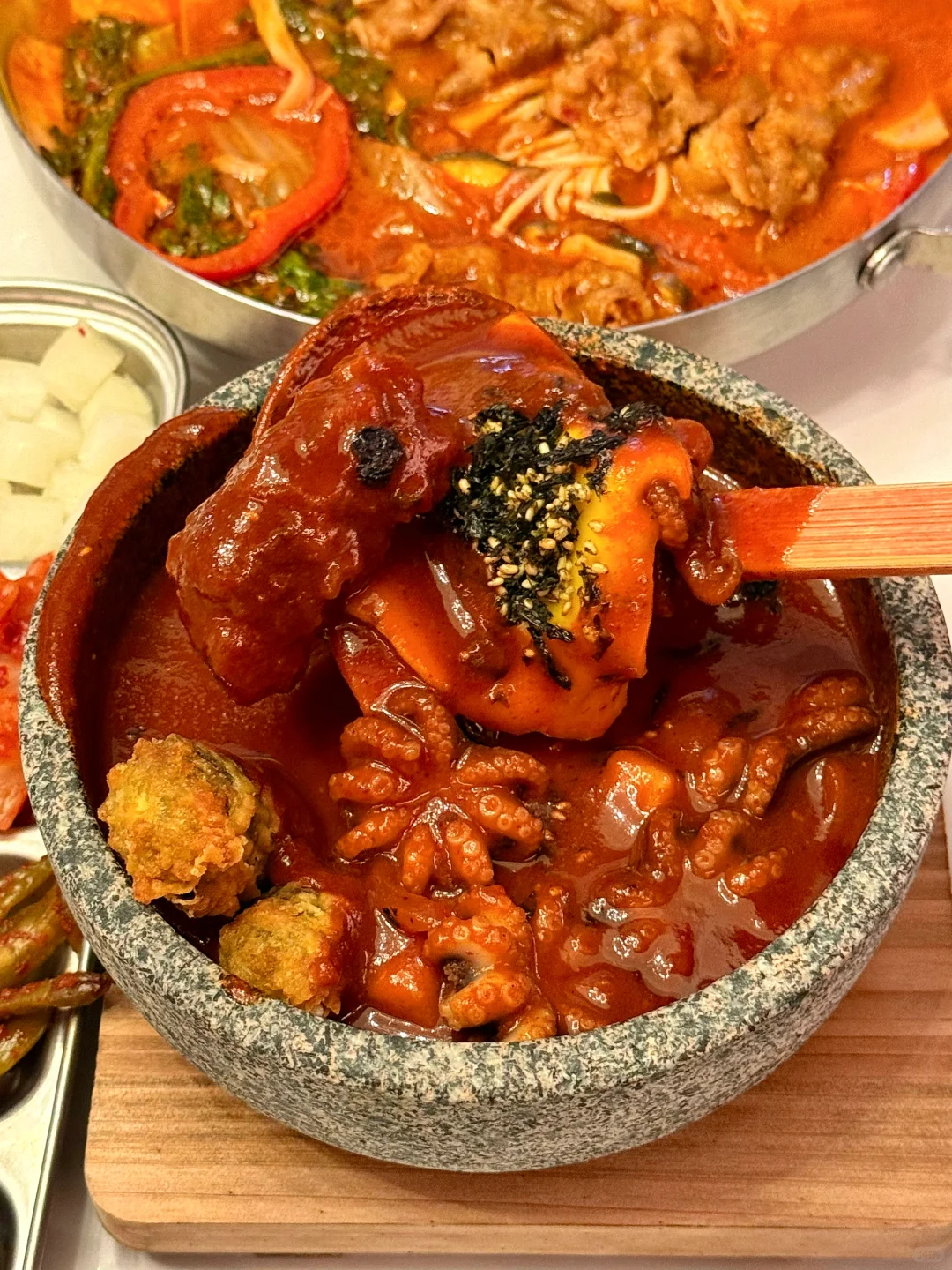 卧卧卧卧?!三刷了😭😭跟着大学生打卡准没错了!! 在五一广场新开的…平价好吃的韩国料理小食堂!!特意提前预约了来吃,果然好好吃!特别是红椒八爪鱼🐙和韩式橙香炸虾🍤让人惊艳住了,招牌韩式肥牛锅品质很不错,份量嘎嘎足…真的惊为天人的好吃!韩式甜辣咕噜鸡每个人都夸爆好吃!喜欢这口的真的要去试试啊啊,不会失望😭… 全程服务都很贴心!!无论是火锅主食还是炸物小吃都没踩雷欸,吃的很满意!非常nice! 姐妹们!就在7mall的📍泡菜郎·韩式食堂