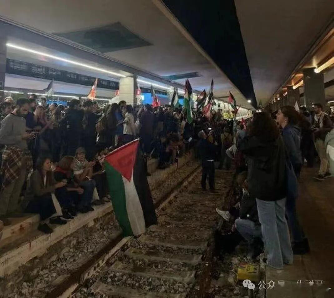 当暴力试图扼杀呼声,它往往只会在历史的回音壁上激起更响亮的呐喊。不得不说,以色列的最新情报,考验的是全世界的智商。但以色列的狠辣手段,却是不容置疑的。10月1日夜,以色列海军拦截了这些船队,我们可以听到视频中“举起手来”的怒吼。随后消息传出,多艘船只已遭以军扣押,包括通贝里在内的很多人被以军逮捕。消息传回欧洲,欧洲人彻底愤怒了,即便已经是深夜,很多人高举巴勒斯坦旗帜,走上街头呐喊;在意大利,愤怒更在人们心头燃烧,一些人占领了铁路……