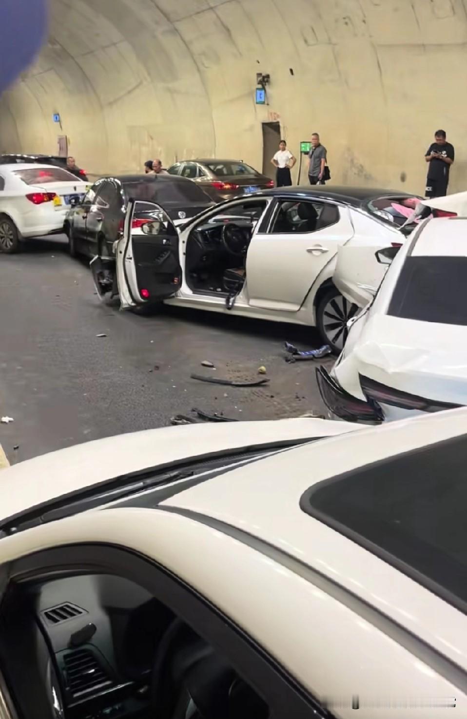难怪堵十个小时,隧道突发连环撞! 隧道里突然上演“碰碰车灾难片”!十多辆车连环追尾,撞得车门变形、碎片满地,整条隧道直接堵成“停车场”。看这惨烈现场,车速得多疯狂才会搞出这么大动静? 有人吐槽司机开车跟飞似的,有人猜是隧道里视线差惹的祸。这下好了,没几个小时别想通车,耽误事不说,想想都后怕。你说这到底是司机太猛,还是隧道设计有坑?
