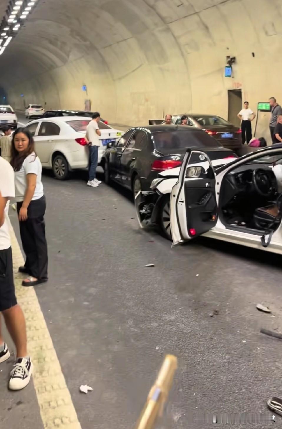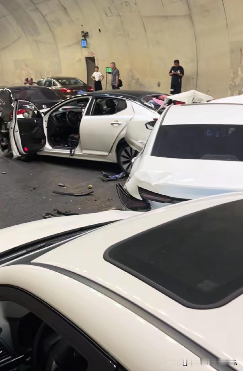 难怪堵十个小时,隧道突发连环撞! 隧道里突然上演“碰碰车灾难片”!十多辆车连