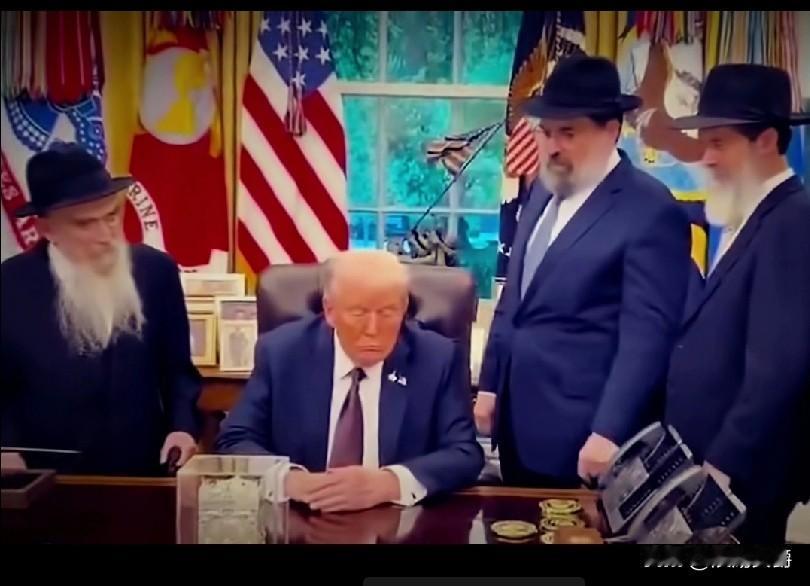 特朗普接见犹太拉比。 拉比站在特朗普两边,说话手对着特朗普指指点点,有点像逼宫的样子。特朗普唯唯诺诺,称赞拉比说话有道理。 如果世界是个江湖,这帮人就是魔教,掌握着世界上绝大部分财富,网络情报,暗杀组织,连特朗普也不敢轻举妄动,是特朗普得罪不起的爷。 当今世界,拼的不是战场上的勇猛,科技为王,说白了金钱至上。巴基斯坦尽管购买了大量的全套中式先进武器,有把握打一场以少胜多的技术战,但还是惧怕印度,这也是为什么印巴空战中不敢把印度战机全打下来的原因,因为国力拉垮,没有强大的财团支撑,打不起全面持久战。 特朗普接见他国总统,都是神气十足,总统们只能坐小凳子或者站在对面听训,只有犹太拉比敢站在宝座旁边指指点点。