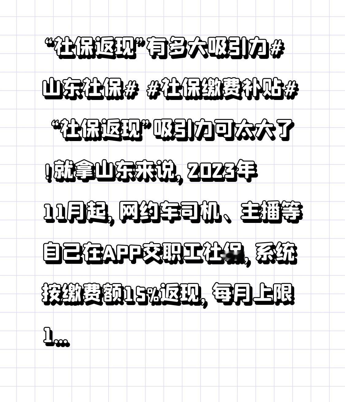 “社保返现”有多大吸引力山东社保 社保缴费补贴 “社保返现”吸引力可太大了!就拿山东来说,2023年11月起,网约车司机、主播等自己在APP交职工社保,系统按缴费额15%返现,每月上限180元。自己交最低档社保每月1200块,返180,相当于打八五折,一年能返2160元,够换两部中端手机。而且钱直接进社保卡金融账户,7个工作日到账,超方便。 天津也不错,老板不裁员返缴费六成,“4050”人员有优惠,多交的居民社保部分能退,快退休的政府帮忙交。70岁以上医保卡每年返三千多。社保返现既减轻负担,又方便快捷,谁能不心动?