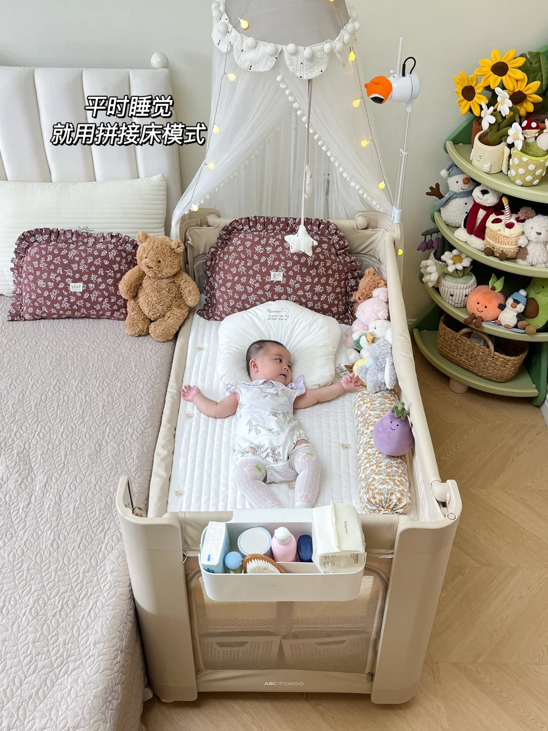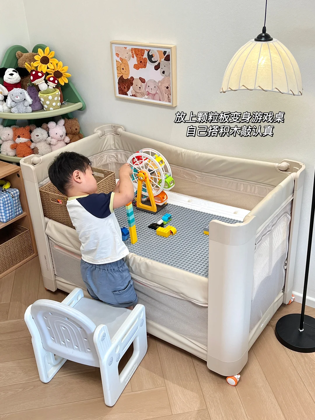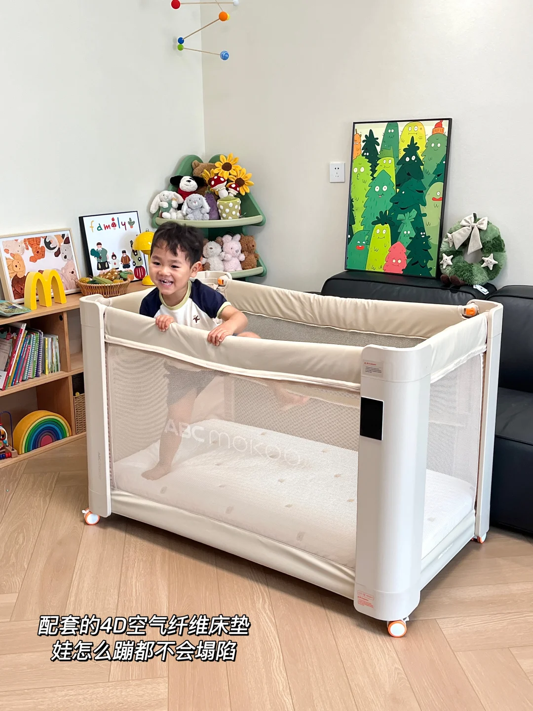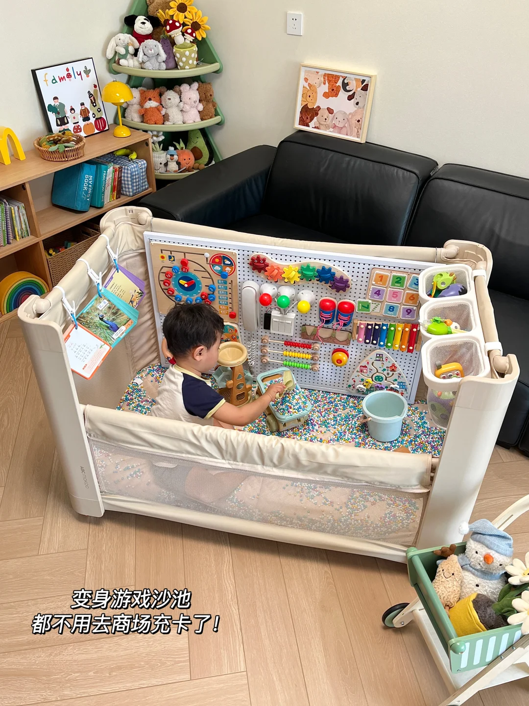 婴儿床在我家里能有多百变! 泳池+蚊帐拼接床+沙池+忙碌屋+猫窝+游戏桌+衣架储物二合一+秘密基地+蹦床+看护床 改造各种游戏模式给大宝玩 一玩一个不吱声 根本不找妈 小宝躺着睡觉 配一个蚊帐 随便翻滚都不怕掉床! 自带万向轮 客厅卧室都随意推行 还自带看护器 随时随地看护宝宝 一个人带娃也可以忙自己的事情 重点是它无油漆、无甲醛 收到打开就能用 一键开合免安装敲方便 平时不用了就折叠起来 还能当一个床头柜 完全不会闲置 有娃的姐妹都去冲!