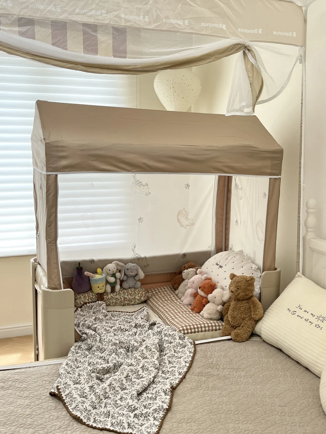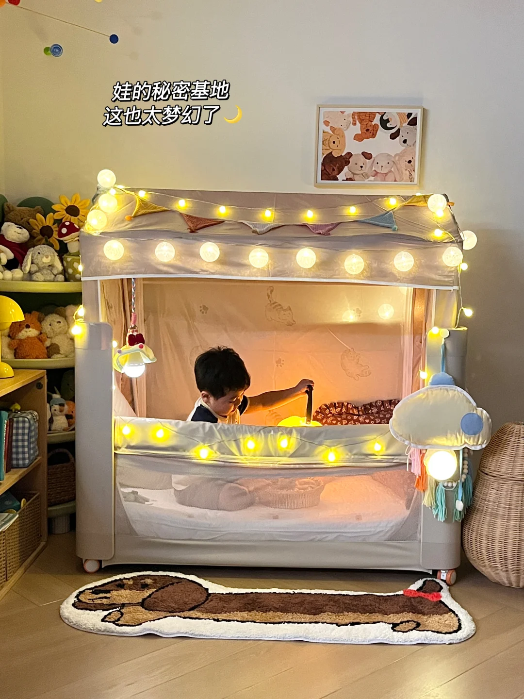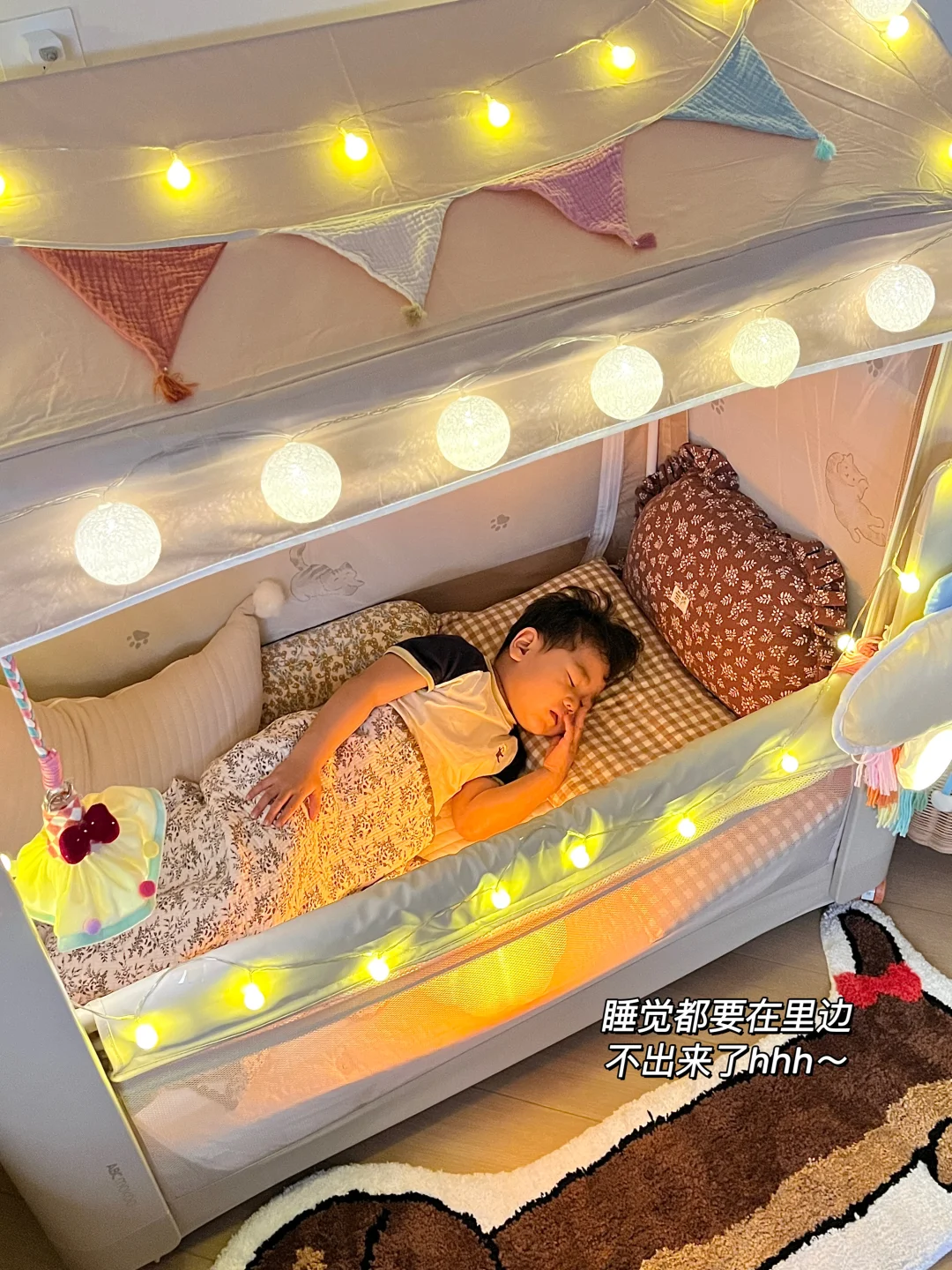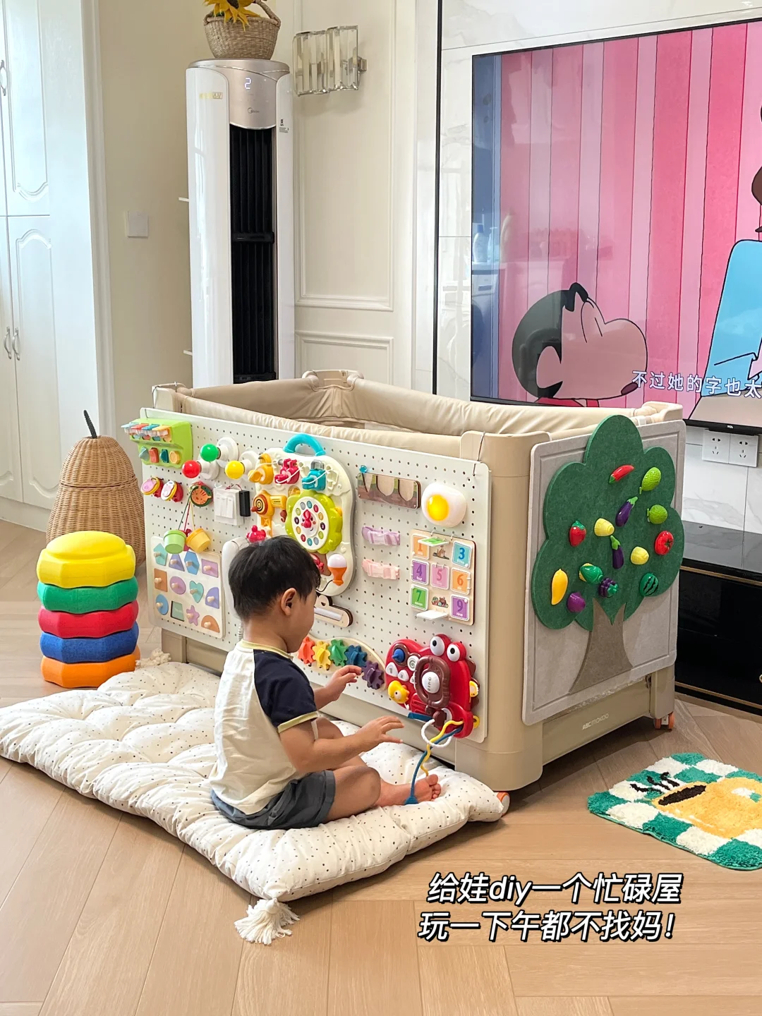 婴儿床在我家里能有多百变! 泳池+蚊帐拼接床+沙池+忙碌屋+猫窝+游戏桌+衣架储物二合一+秘密基地+蹦床+看护床 改造各种游戏模式给大宝玩 一玩一个不吱声 根本不找妈 小宝躺着睡觉 配一个蚊帐 随便翻滚都不怕掉床! 自带万向轮 客厅卧室都随意推行 还自带看护器 随时随地看护宝宝 一个人带娃也可以忙自己的事情 重点是它无油漆、无甲醛 收到打开就能用 一键开合免安装敲方便 平时不用了就折叠起来 还能当一个床头柜 完全不会闲置 有娃的姐妹都去冲!