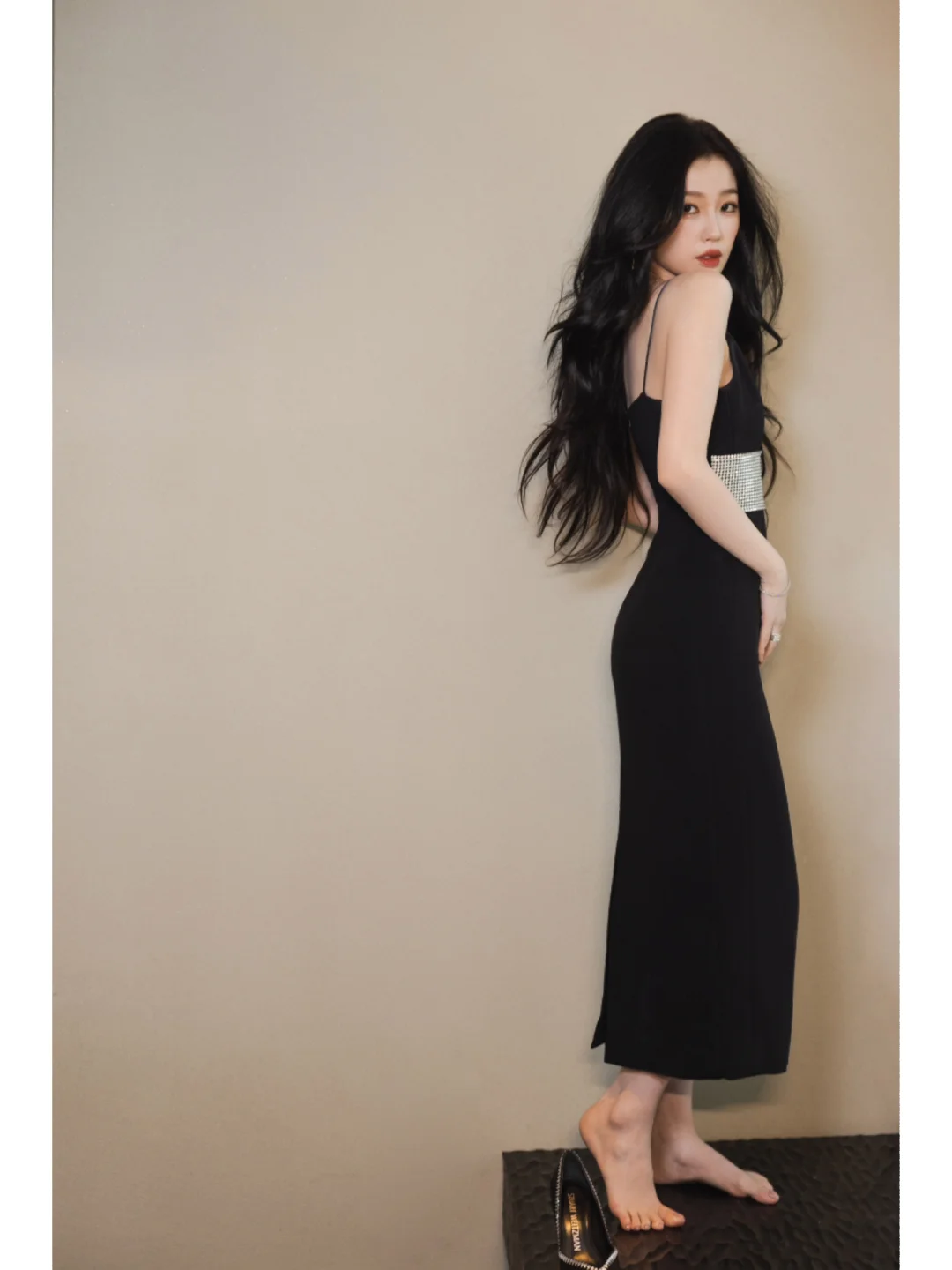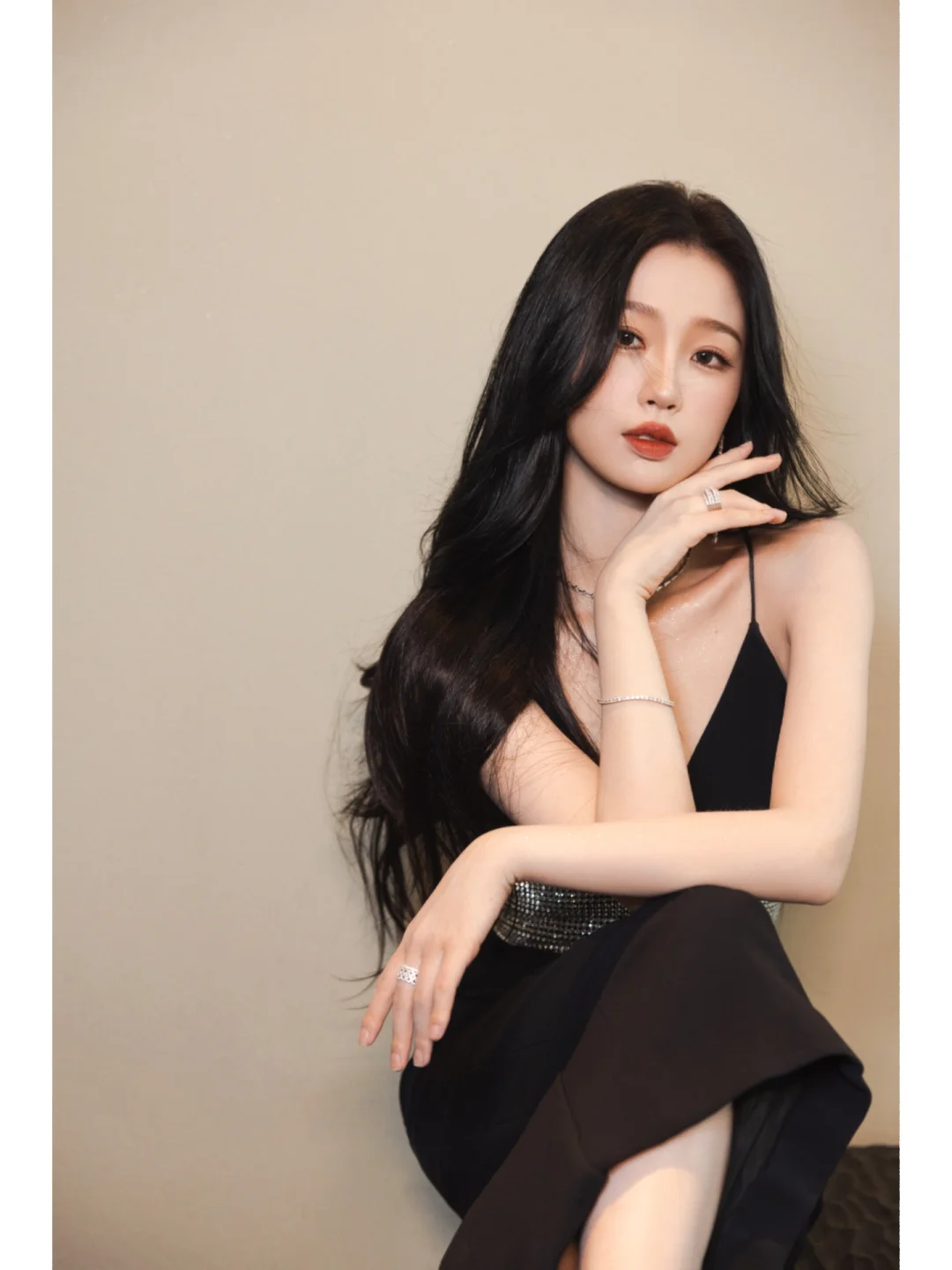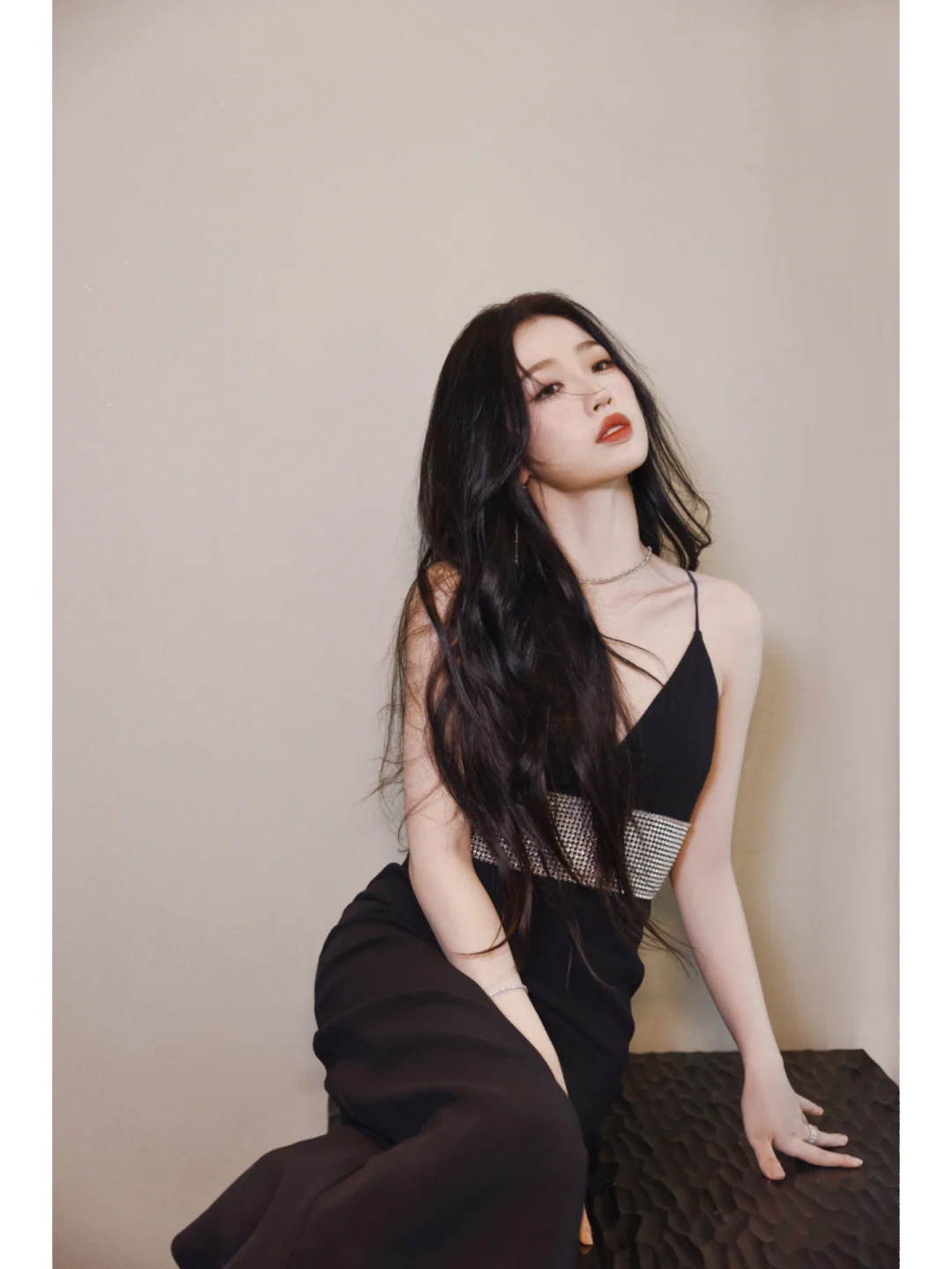私服穿搭 水晶缀饰深v吊带裙 230222/微博 更新 连衣裙:David Koma 高跟鞋:Stuart Weitzman 耳夹:De Beers 项链:De Beers 手链:De Beers 戒指1:De Beers 戒指2:De Beers