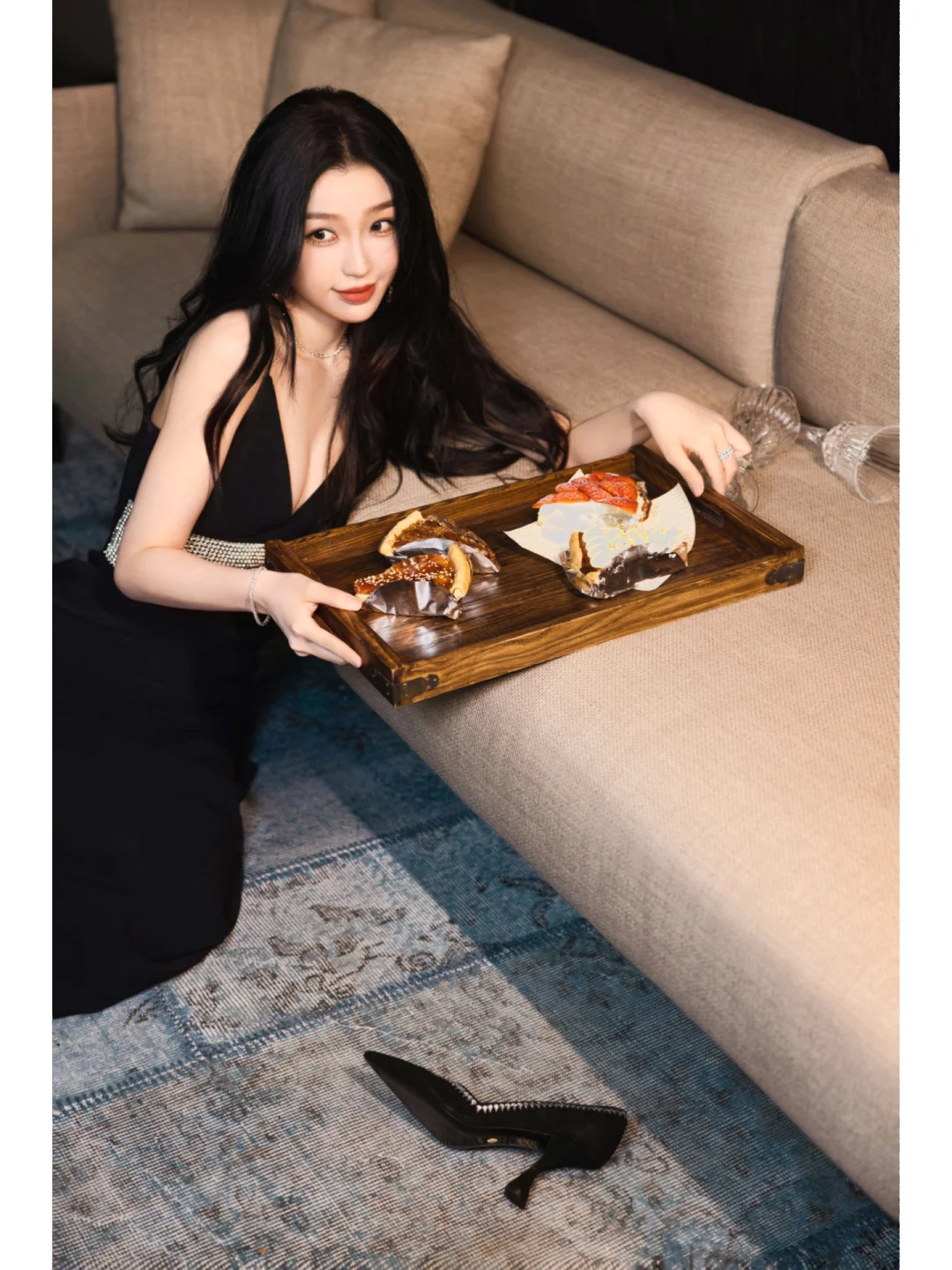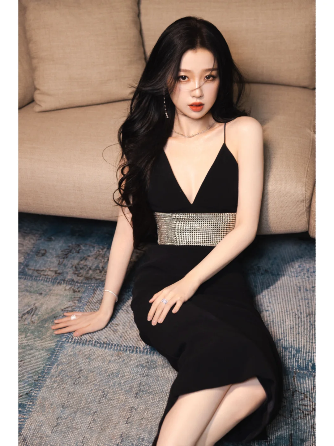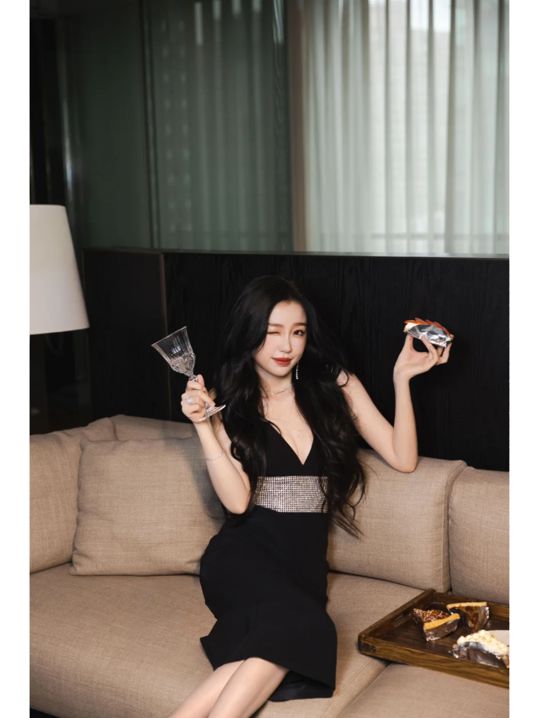 私服穿搭 水晶缀饰深v吊带裙 230222/微博 更新 连衣裙:David Koma 高跟鞋:Stuart Weitzman 耳夹:De Beers 项链:De Beers 手链:De Beers 戒指1:De Beers 戒指2:De Beers