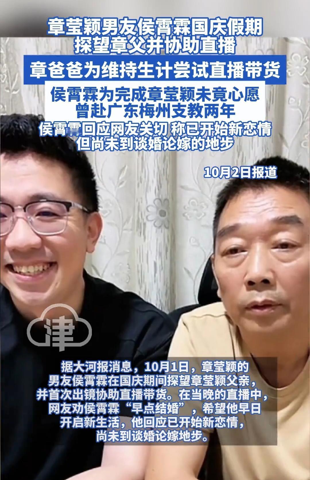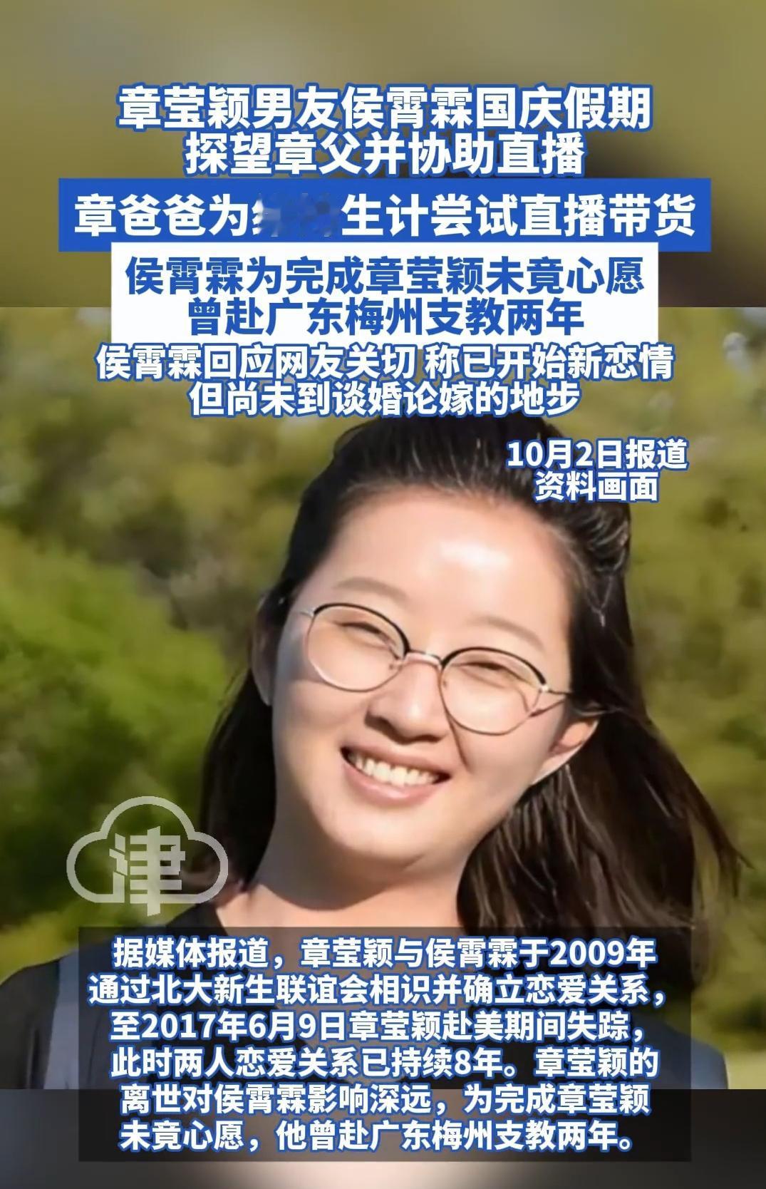 章莹颖和侯宵霖是在中山大学认识的,两人认识后就进入了热恋。 在学校生活中两人互相帮助,共同进步,同时都被保送到了北京大学读研究生,只是后来章莹颖作为学者交流到了美国。 章莹颖是在校外签订租约过程中失联的,她和一个驾驶黑色车辆的男子交流几句后就上车了,于是就发生了后面的惨案。 至今,她的遗体仍未被找到,丧尽天良的连环杀人案凶手至今未说出埋她的地方。 杀人凶手甚至让律师放话:除非是把他转到安全安全级别更低的监狱,否则不会谈遗体。 杀人凶手想用说出遗体的方式让章父来答应减刑的目的,真的是嚣张至极。 已经过去八年了,连一根头发丝都没找到。章家为了给自己的女儿讨回公道也是陷入了困境,虽然社会捐款已超400万,总是被人质疑卖惨来骗捐款,章父怒晒捐款去向,回应网友质疑。 十一期间,那个曾和章莹颖相恋98年,共同保送的侯宵霖来到了章家,帮助章父直播。 直播期间他透露现在自己有了新的感情,但是还没到谈婚论嫁的地步,但自己还是会和章父一起为章莹颖讨回公道,之前他也是陪着章父多次赴美国。 8年的热恋怎能说忘就忘,他还参与纪录片录制和创作歌曲来怀念章莹颖。 在这场爱情里面,没有背叛,虽然时间已经带走了男朋友的身份,8年过去了,他还履行了责任,也理应允许结束哀悼,这就是爱情真实的模样吧。 (信息来源:津云)