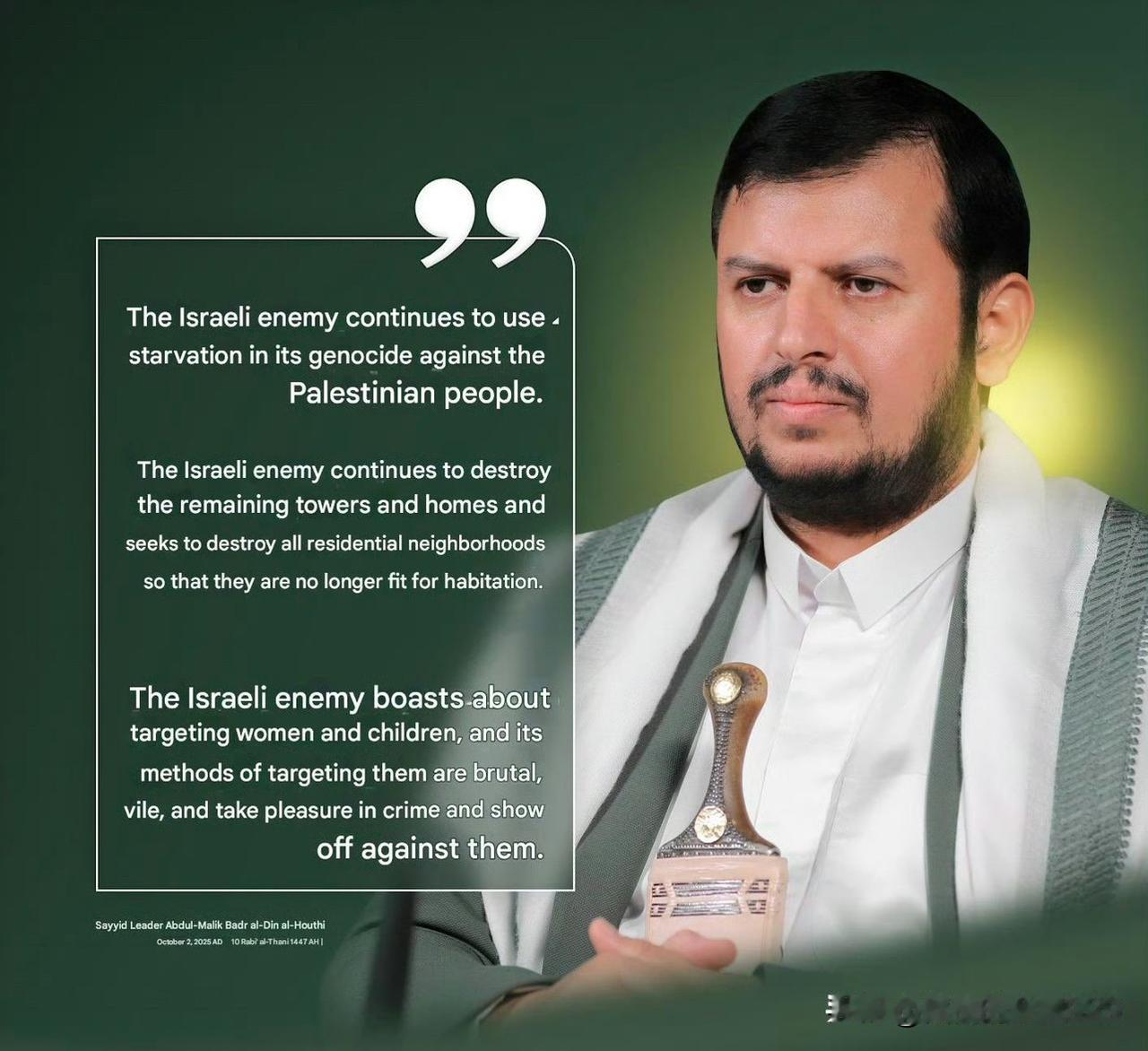 也门胡塞武装领导人阿卜杜拉-马利克·胡塞昨天发表演讲声明再次谴责以色列反人类,违反国际法,对平民妇女儿童进行惨无人道的战争屠杀行为。 阿卜杜拉·胡塞称,以色列敌人继续在对巴勒斯坦人民的种族灭绝中使用饥饿。继续摧毁剩余的塔楼和房屋,并试图摧毁所有住宅区,使它们不再适合加沙人民居住。 他们(以色列)更是吹嘘要针对妇女和儿童,其针对她们进行残酷、卑鄙的反人类战争行为,并在犯罪中寻求快感并进行炫耀。 阿卜杜拉·胡塞还表示,“真正的损失是向敌人投降或以任何形式配合敌人的阴谋,我们也门人民基于责任、人性和高尚的道德,继续支持加沙,我们将继续坚持这一伟大立场。”