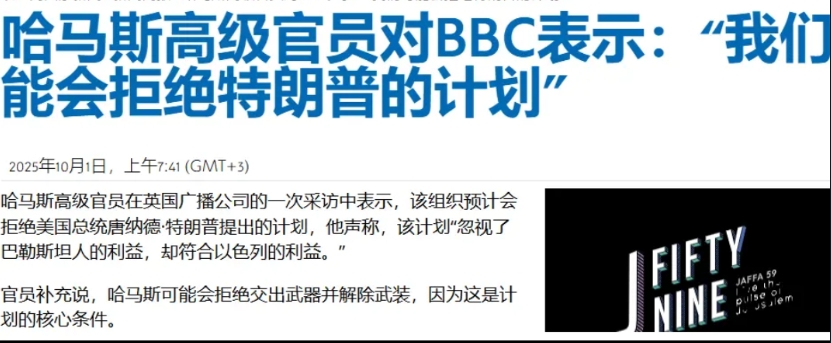 周四,媒体称:哈马斯加沙领导人明确表示--他反对特朗普21点和平计划;埃及外交部长告诉哈马斯:“如果哈马斯拒绝特朗普计划,局势将变得困难,并且可能会升级。”