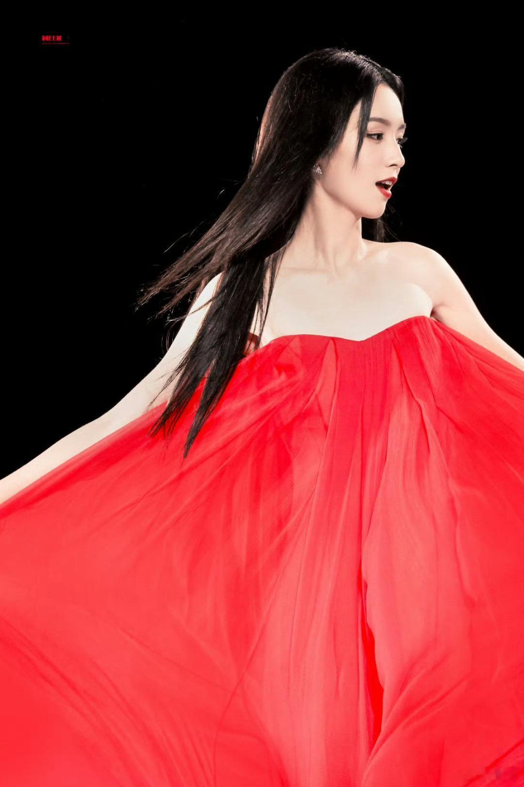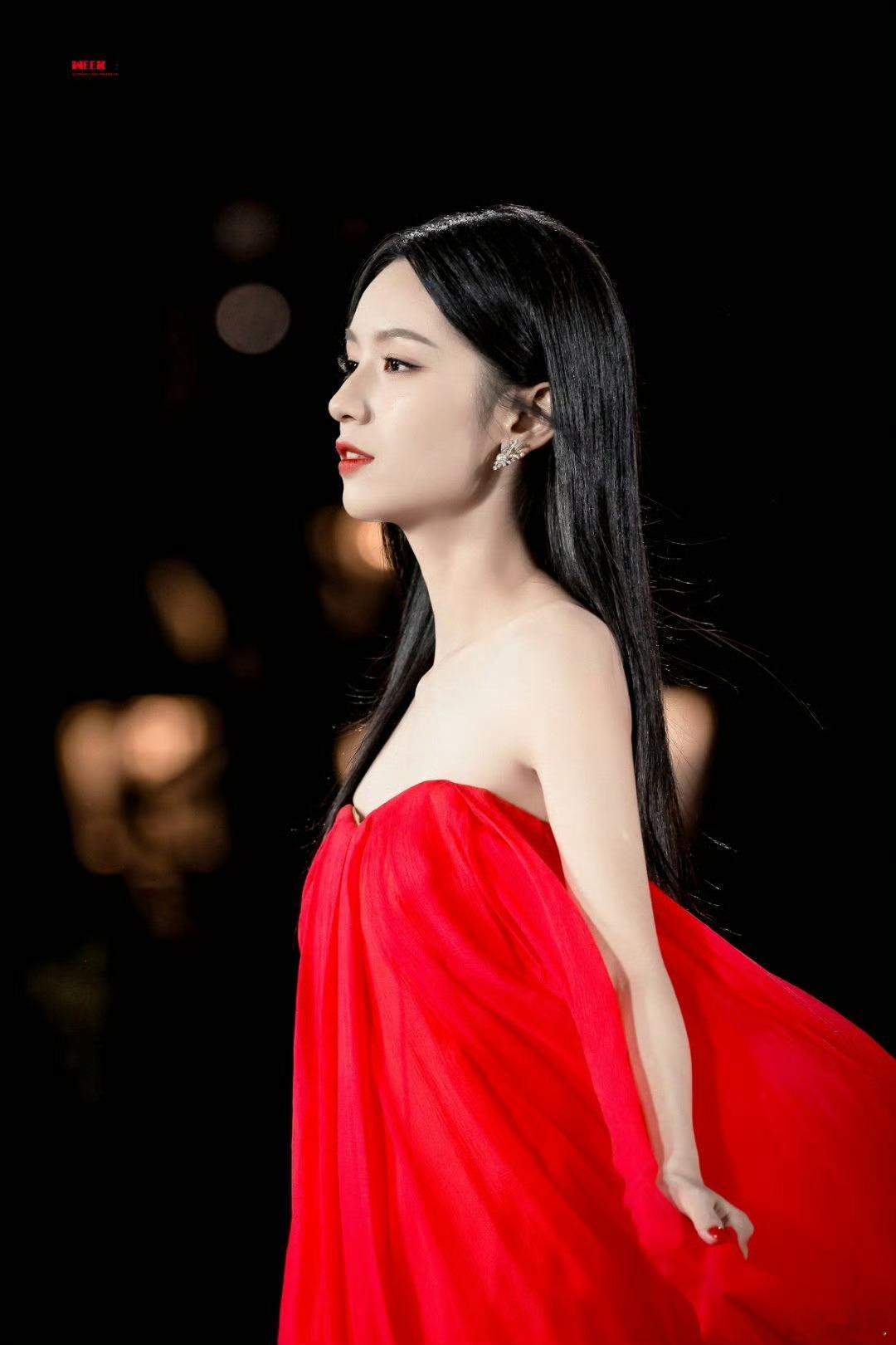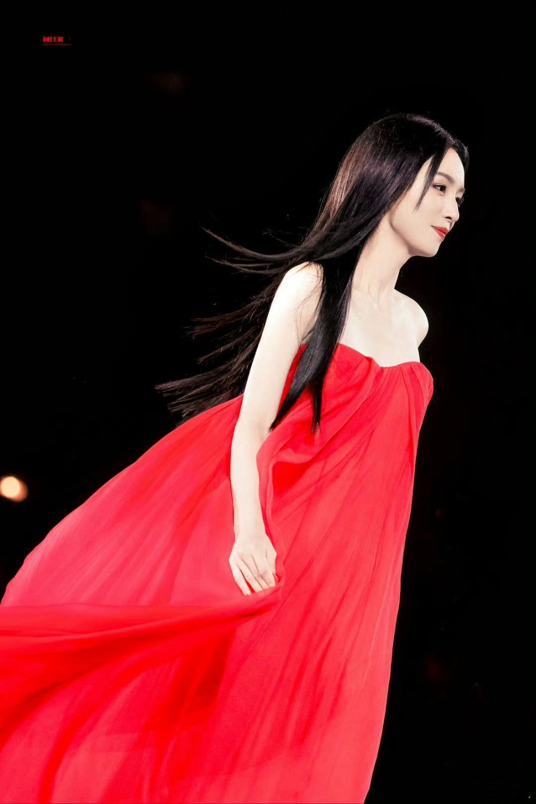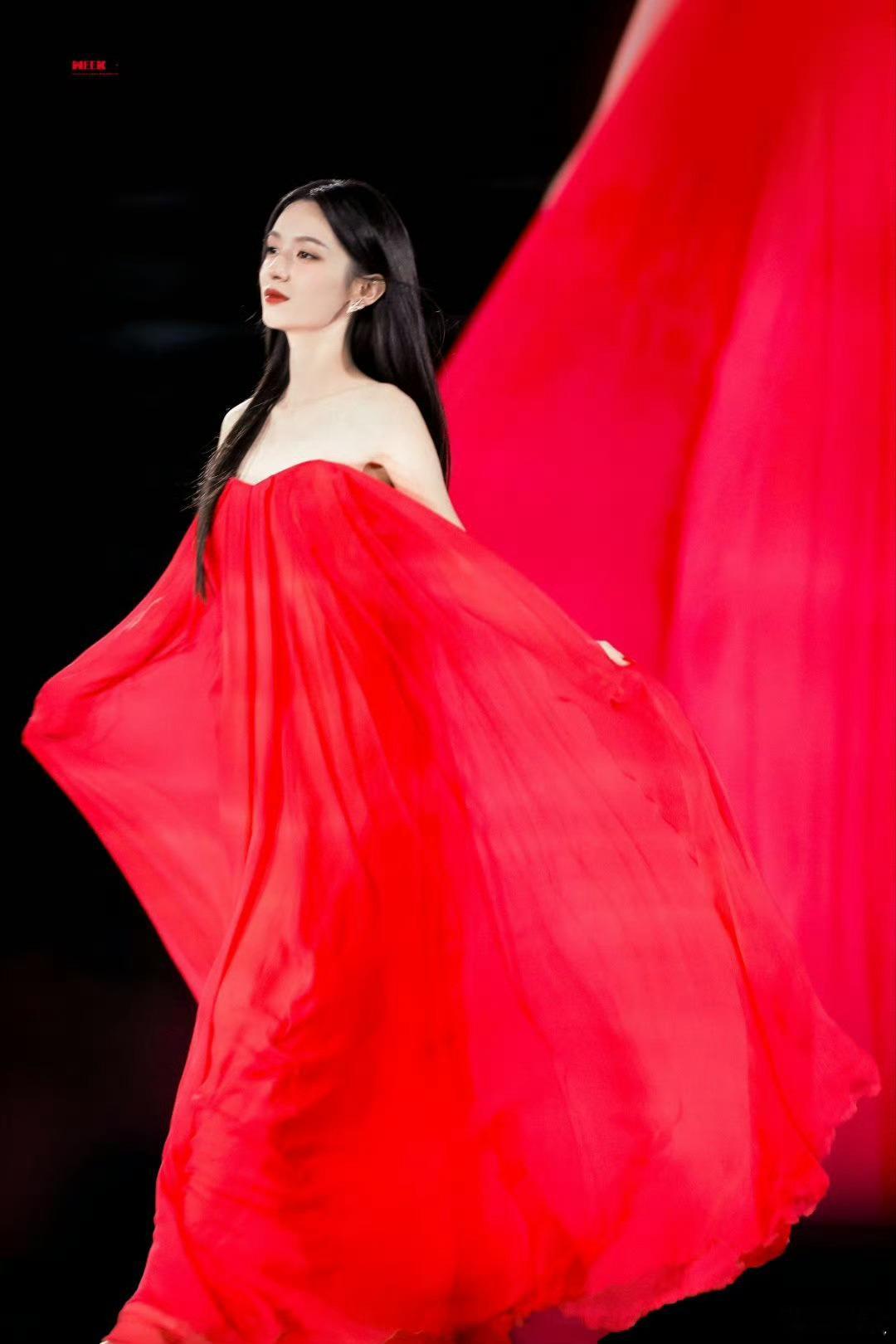 T台上绽放的东方红玫瑰🌹周也巴黎时装周红裙走秀周也穿着红裙在巴黎走秀周也走秀