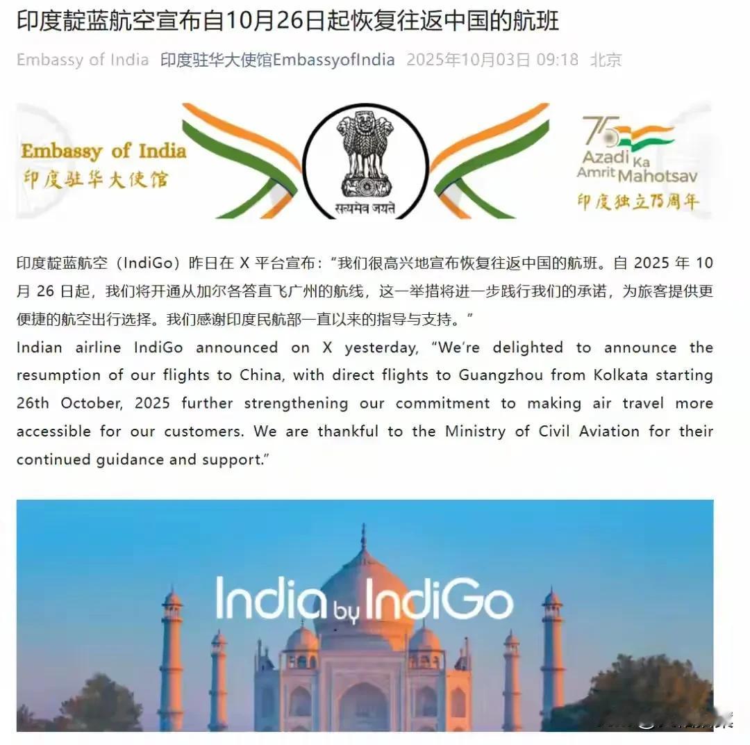 时隔五年,印度开通首个直航中国的航班,首个直航城市选择了广州。广州的小伙伴可要迎