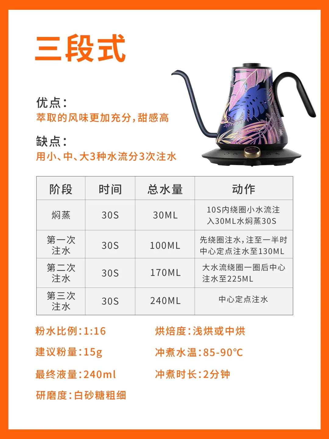 三段注水法就是分段萃取,把一段水分三段注入,可以明确咖啡前、中后段的风味。