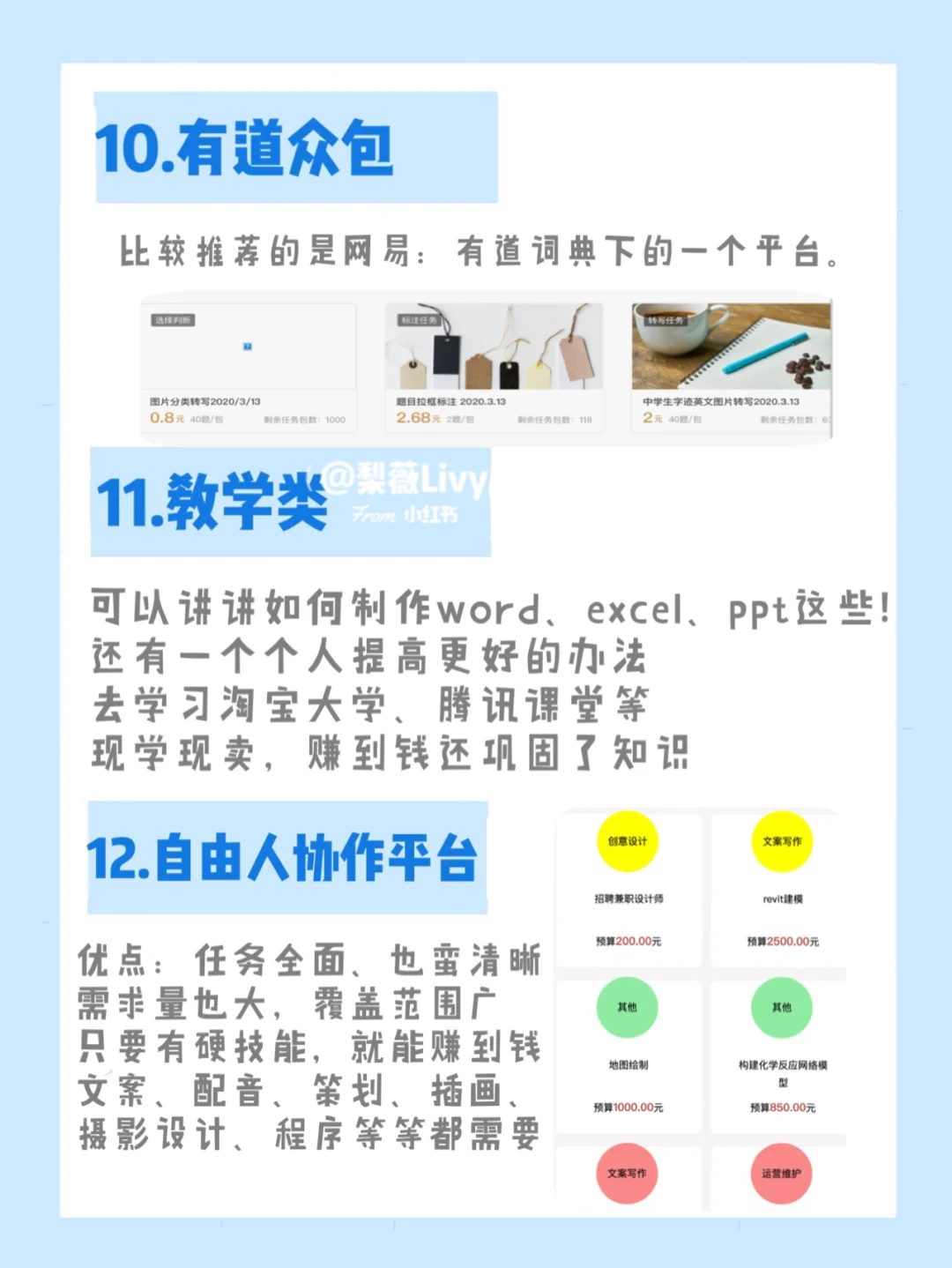 形式多种多样:职场资讯、知识普及、情感咨询、财税咨询等等。