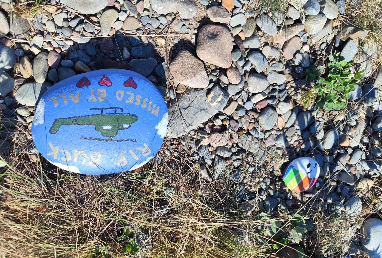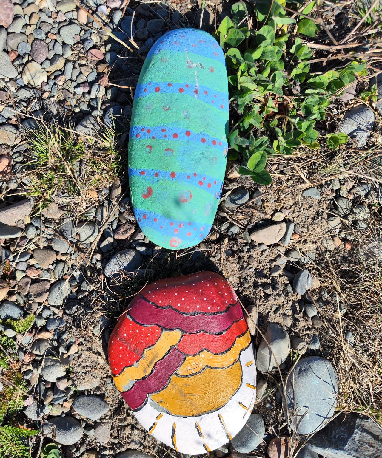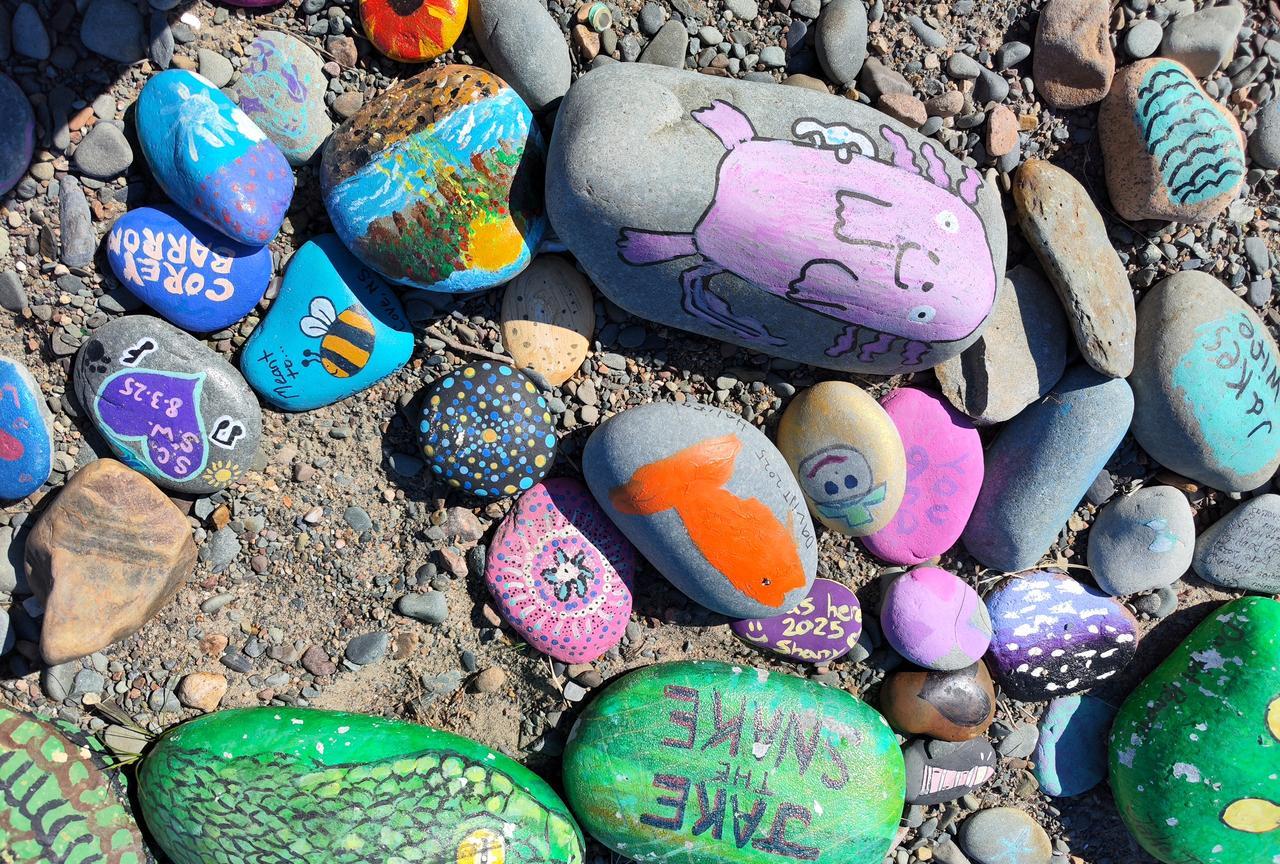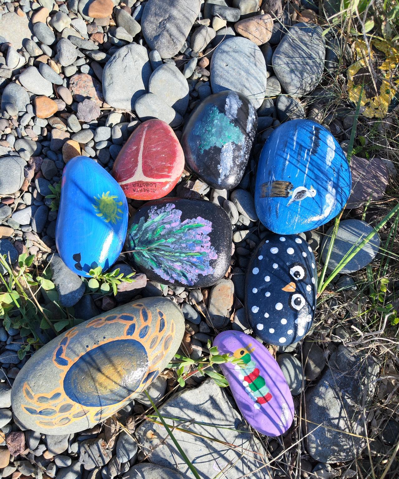 一个很有温度的海湾。 孩子城市的周边,有好多湾和好多湖,孩子今天又是驱车百公里看大海。 今年是中国的蛇年,大家画的各色各样的小石头,拿来摆了个蛇型阵。 走累了,孩子让我俩坐长椅上休息,她给我们拍照。正准备姿势,旁边过来一对和我们年纪差不多的夫妻,男人主动和孩子说,我给你们拍个全家照吧。 记不得这是最近在景点第几个要给我们拍照的人了,前几天有个女的给我们拍照时还说,要真心微笑,不要摆拍笑。很暖心。
