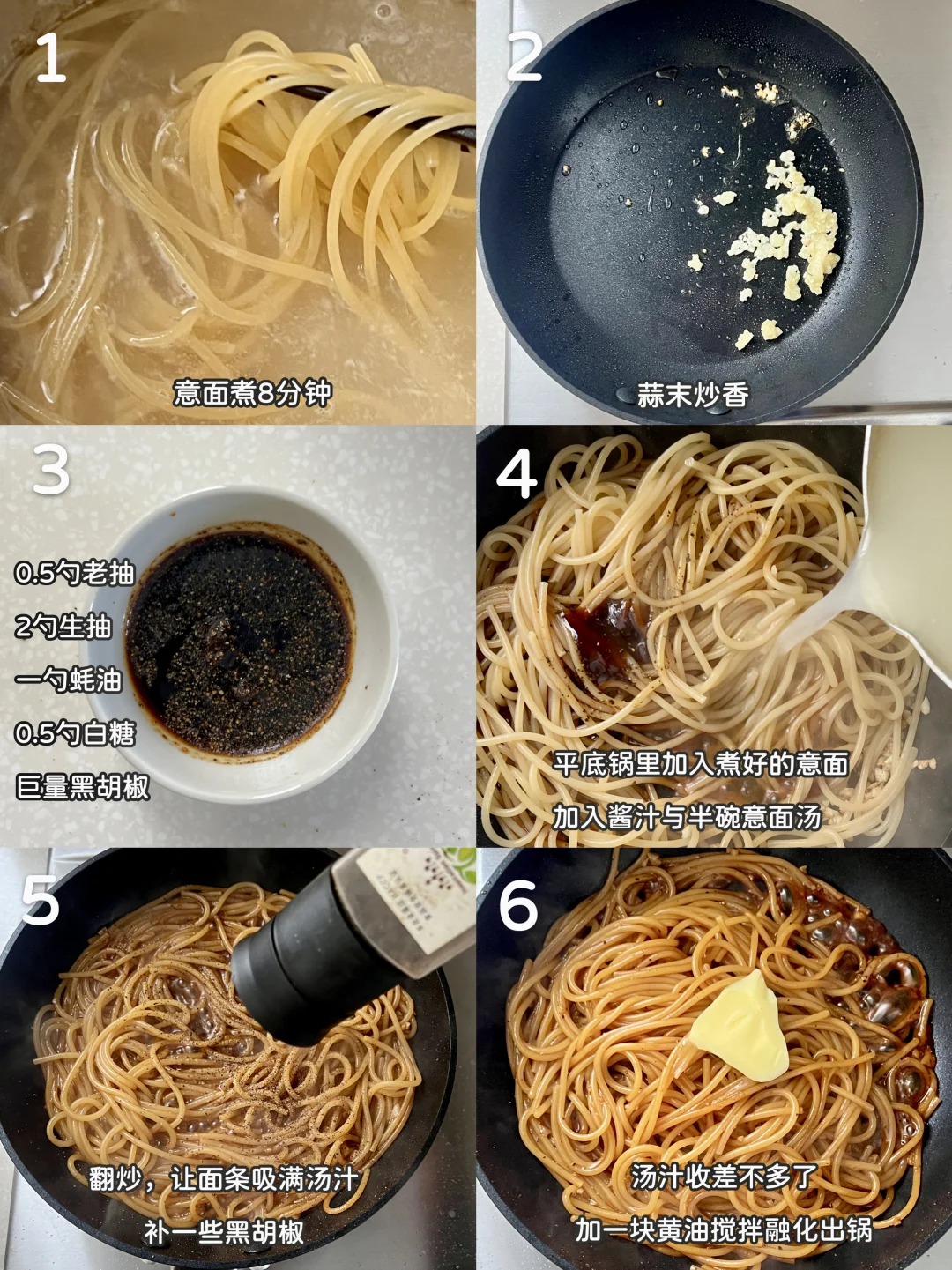 没有彩椒和牛肉但还是硬着头皮做了黑胡椒意面