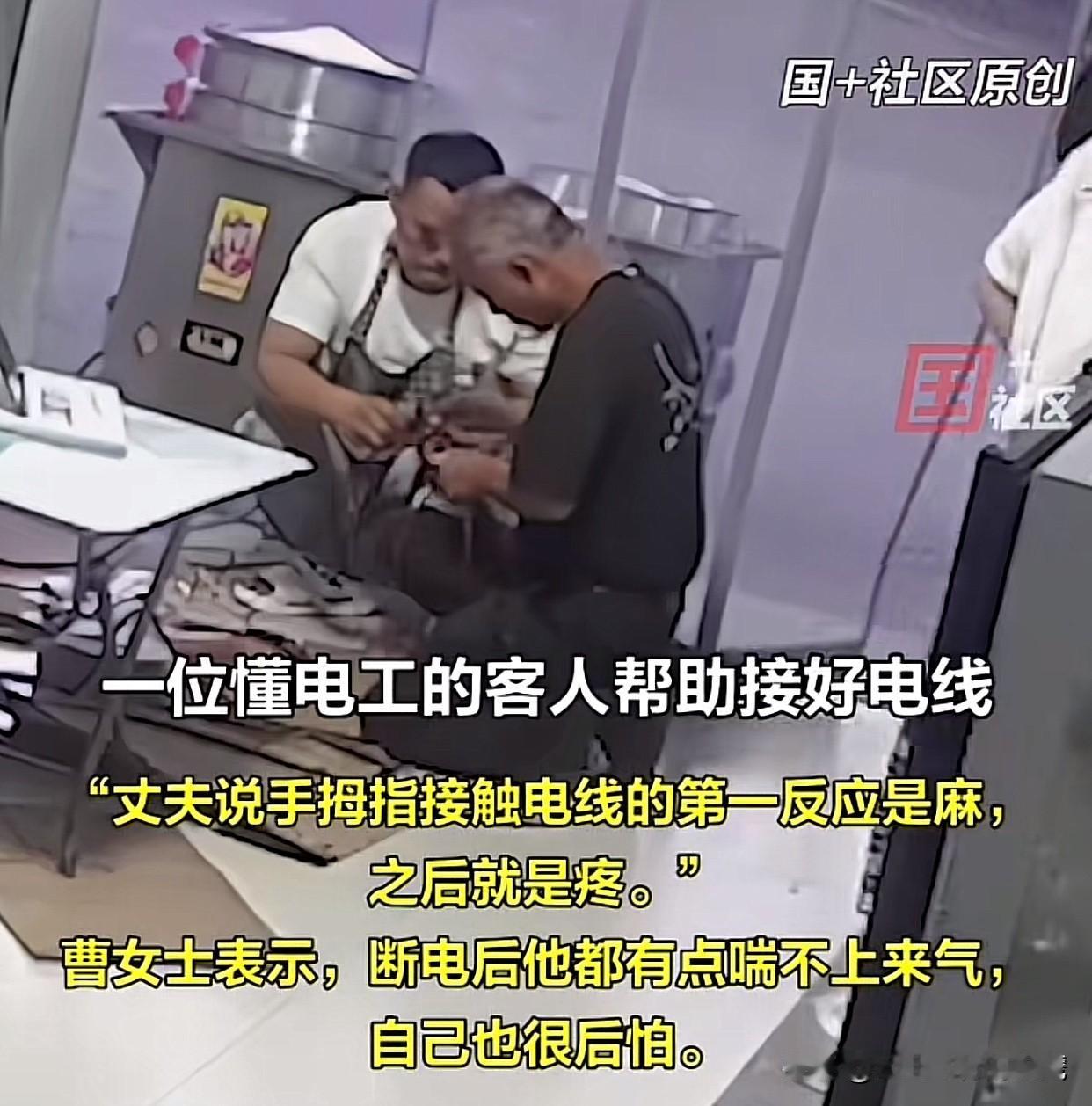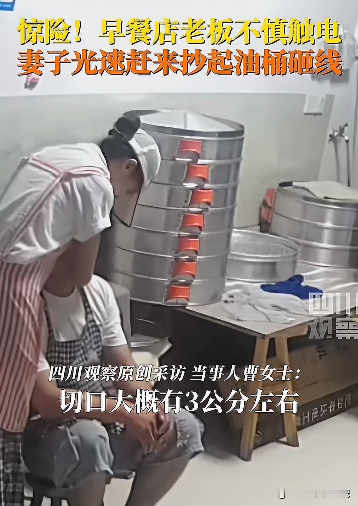 “这也太惊险了吧!”浙江一家早餐店一男子干活时不小心摸到破了的电线,一下子被电得大叫。妻子听见声音冲出来,想都没想就抓起旁边的油桶往电线砸。才十秒钟,丈夫就脱险了,就是食指被烧伤了。 要我说,这妻子真是太机智了。油桶是塑料的,不导电,比直接用手去拉安全多了。看起来是情急之下的动作,其实包含了救命的小知识。 说实话,咱们很多人在家里也这样,电线破了就拿胶布缠缠继续用。我觉得这真是在赌运气,省那几十块钱,万一出事了多划不来。安全上的钱,真是不能省。 最让我感动的是,妻子后来搂着丈夫什么也没说。有时候行动比语言更有力量。我觉得这就是夫妻,平时一起吃苦挣钱,危险时刻毫不犹豫冲上去,出事之后默默陪伴。这种感情,比任何甜言蜜语都真实。