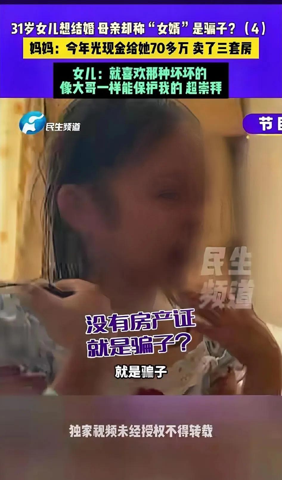 郑州一31岁女子网恋一25岁男孩,因与母亲的意见不合发生争吵,只因她提出要先给男友30万嫁妆,对方便返还60万彩礼,母亲气得发抖:“这明显是骗局啊!” 近日,民生频道发布的一篇报道引起了不少网友热议,纷纷表示这女孩也太让父母头疼了。 这一切始于半年前。女孩在一社交平台结识一年轻男子,两人迅速坠入爱河。 不料,女孩发现自己怀孕,便想和男孩把婚事办了,自己也好心安理得在家养胎。 但男孩却提出一奇怪要求,让女方家先转30万嫁妆,之后男方会退回60万彩礼。还说这里他们家的习俗,女孩信以为真,便和父母说出了男孩的想法。 没想到,父母不乐意,父母知道自己的闺女有过一次被骗的经历,说什么也不同意这件事,并苦口婆心的劝导女儿。 哪料,女孩因为钱的事跟妈妈吵了起来,把妈妈气的整个身子都在颤抖,上去给了女孩一巴掌,这下可闹大了,说啥都要父母给那30万不可,父母死活不同意。 于是,她便找到了“晓莉帮忙”,希望父母能同意此事,自己无论如何都要跟男友在一起,哪怕是不要父母也要在一起。 然而,当父母红着眼眶告诉记者,女儿早年做生意就被骗走百万元,竟偷偷卖掉家中三套房产。今年以来,父母仅现金就已给她七十多万。 更过分的是不给就举刀威胁,说不想活了,父母也是伤透了心,自己的女儿是怎么劝都劝不动。更离谱的男孩还说要去英国,这让父母更放不下心了。 父母想确认下男孩有没有骗自己闺女,多次打视频电话,但对方始终拒接,只肯短信联系。 这让父母更放不下心了,但女孩由于恋爱的原因,对男孩无条件的相信,因此,跟父母的矛盾也越来越严重了。 最激烈时,王女士不仅摔烂家中古董,还用剪刀砸门,甚至要求母亲给向男友道歉。母亲也是心灰意冷,不知道该咋办。 在记者面前,女孩反复说:“我就喜欢坏坏的、大哥型的,他能保护我。” 她坚持认为父母过度干预,并放话若不同意就将独自前往英国。而当记者尝试联系男方时,依然没有任何回音。 最终,双方都没有谈出个结果出来。 这事儿看得人又急又心疼。咱们身边有多少人,一旦陷入所谓“感情”,就什么都听不进去了? 父母的话虽然直接,却是实打实地为你揪着心。骗局往往不是一下子来的,而是一步步让你放低警惕。 真正在乎你的人,不会总让你打钱,也不会连个电话都不接。希望女孩能静下心来,等等真相,也听听父母那句没说完的“我怕你受伤”。 来源:民生频道