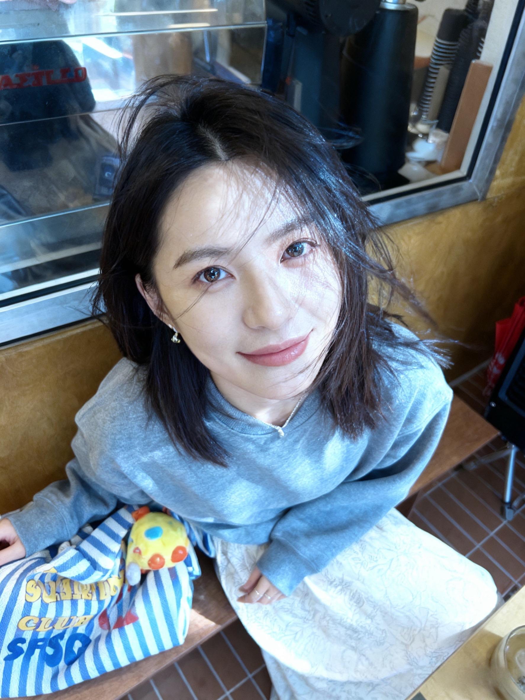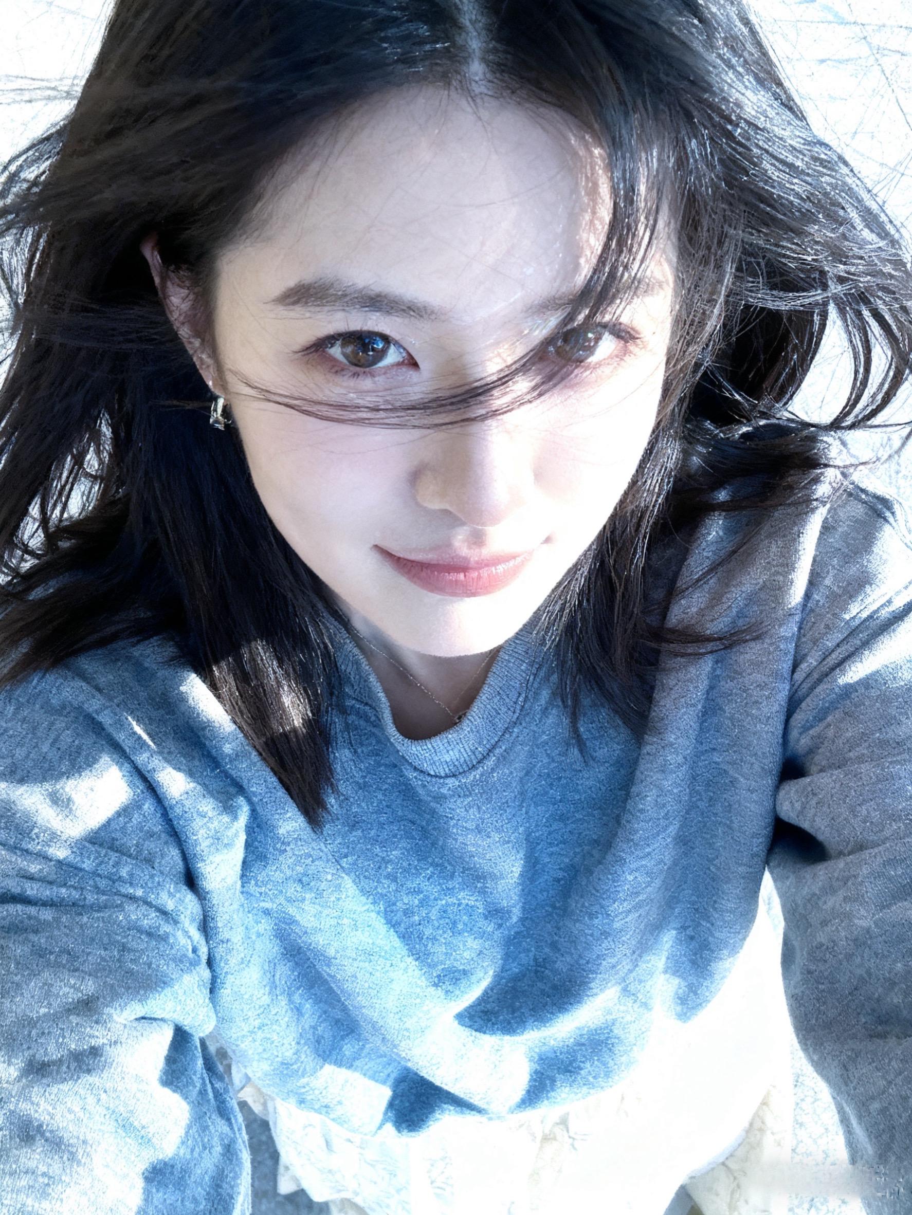阳光下的她像是从画里走出来的人——长发顺着肩线垂成温柔的弧度,蕾丝抹胸衬得肩颈线