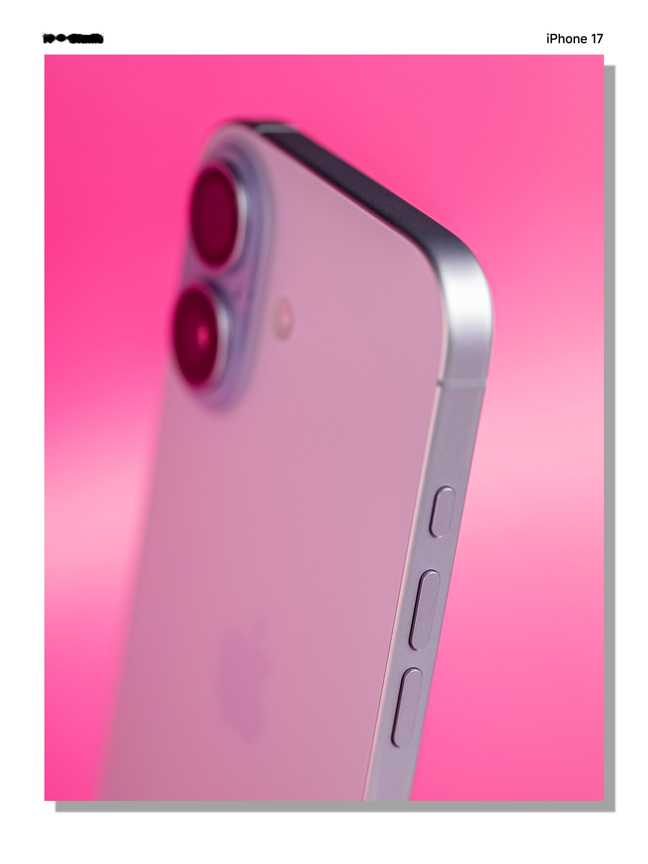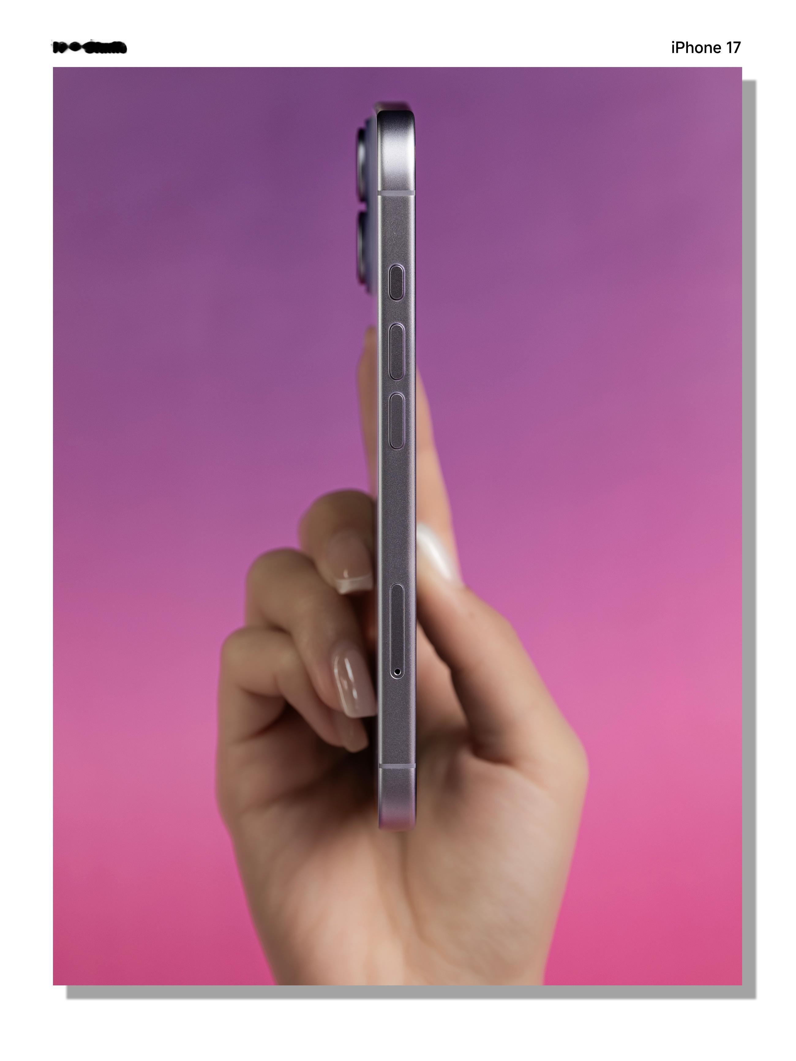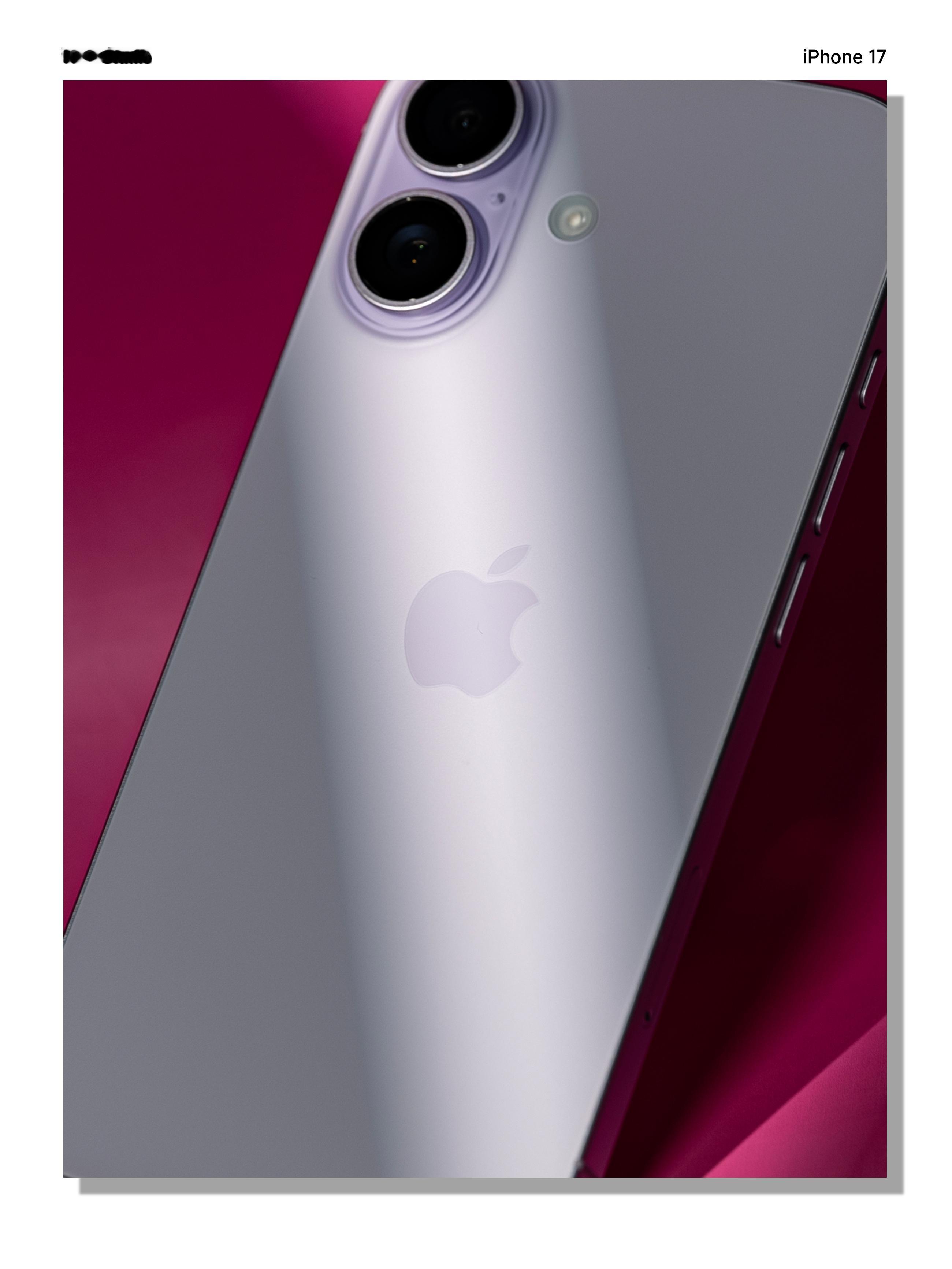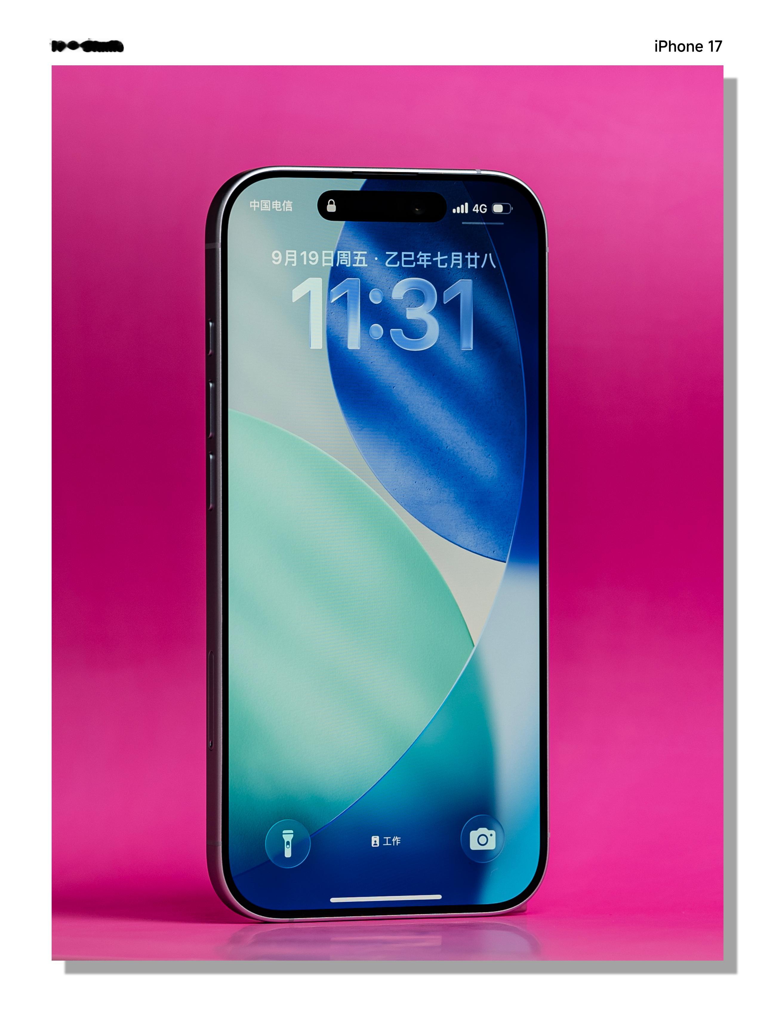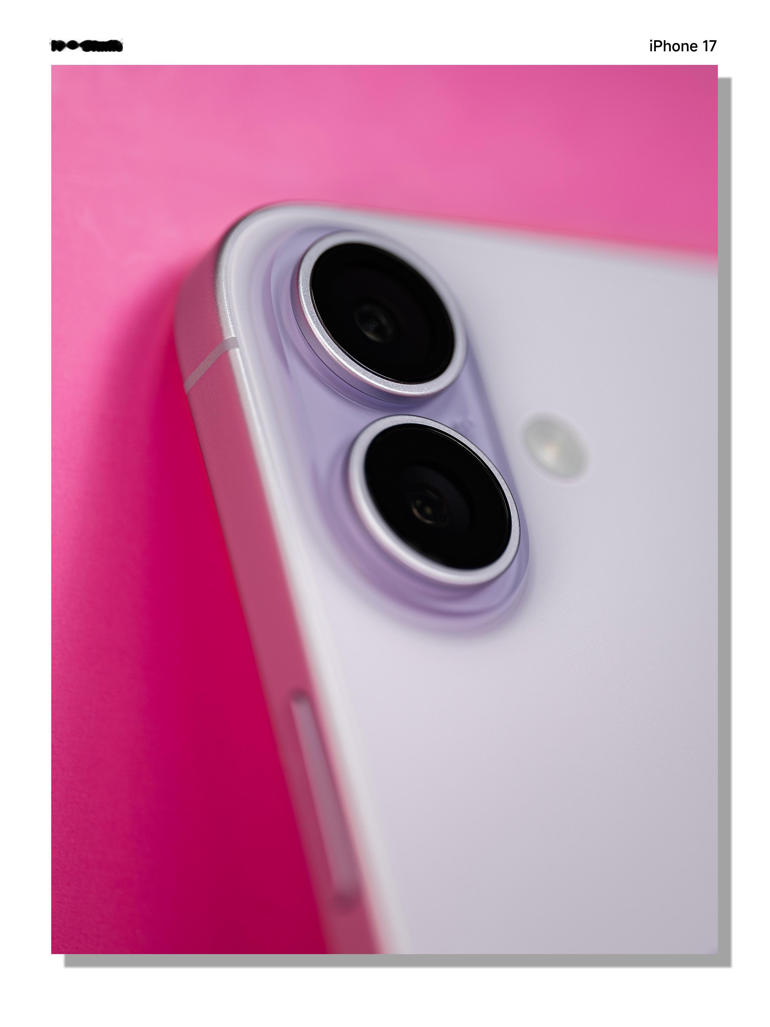 薰衣草配色,在阳光下是一种淡淡的紫色。整体外观设计与上代没太大改变,屏幕尺寸由6.1英寸升级到6.3英寸、中框上下的弧度要更大一些,厚度增加到7.95mm铝合金边框。机身背面是磨砂玻璃+两层凸起的镜头Deco。最重要的是有了120Hz高刷+256GB起步内存,大伙觉得这次iPhone 17的牙膏挤爆了吗?有点东西