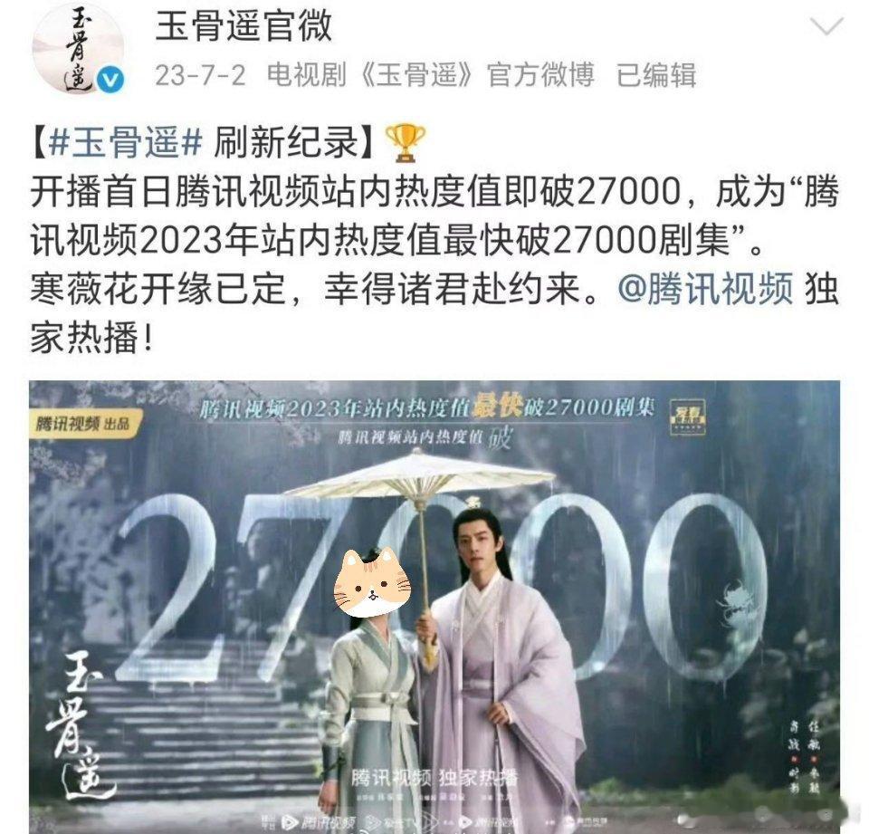 玉骨遥空降,首播热度27000,腾讯至今无人打破这个记录,对吧? ​​​
