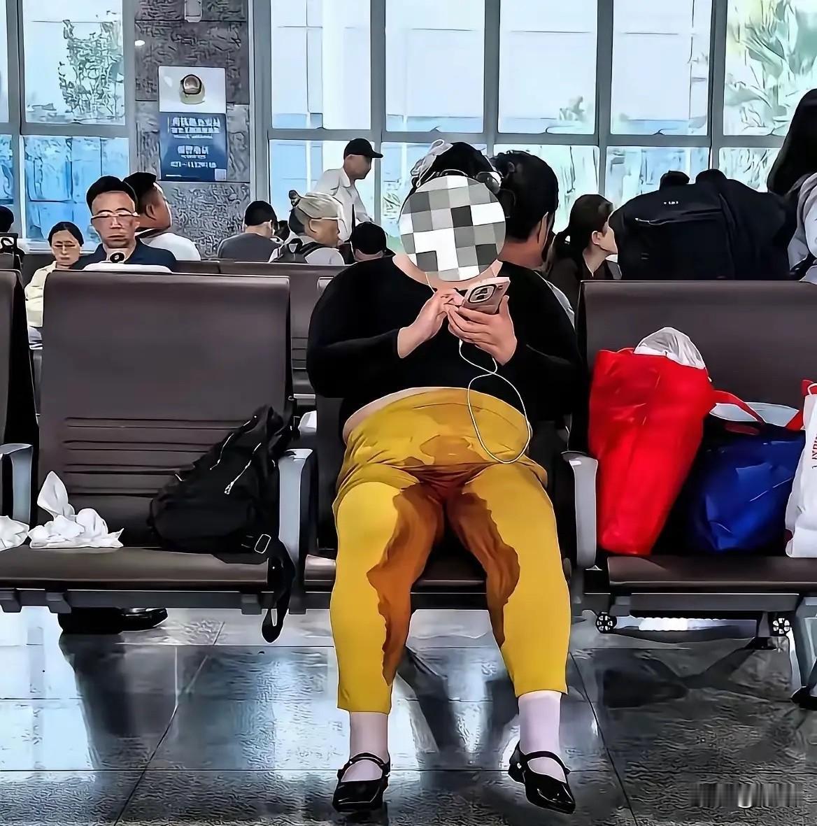 刚刚在高铁站看到的一个女孩在玩手机 他裤子是不是来姨妈没注意到呀? 我要不要上去提醒一下她啊?