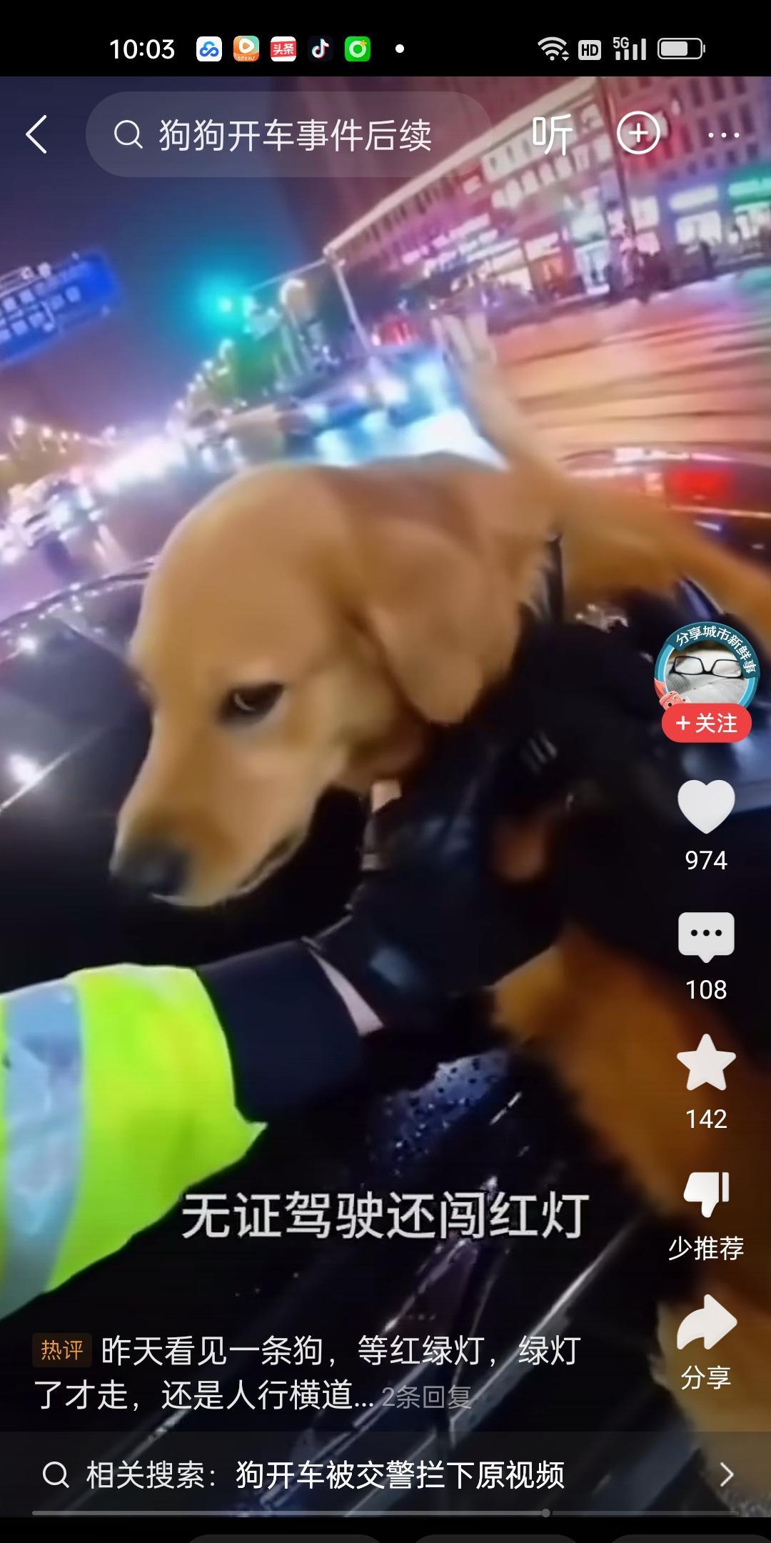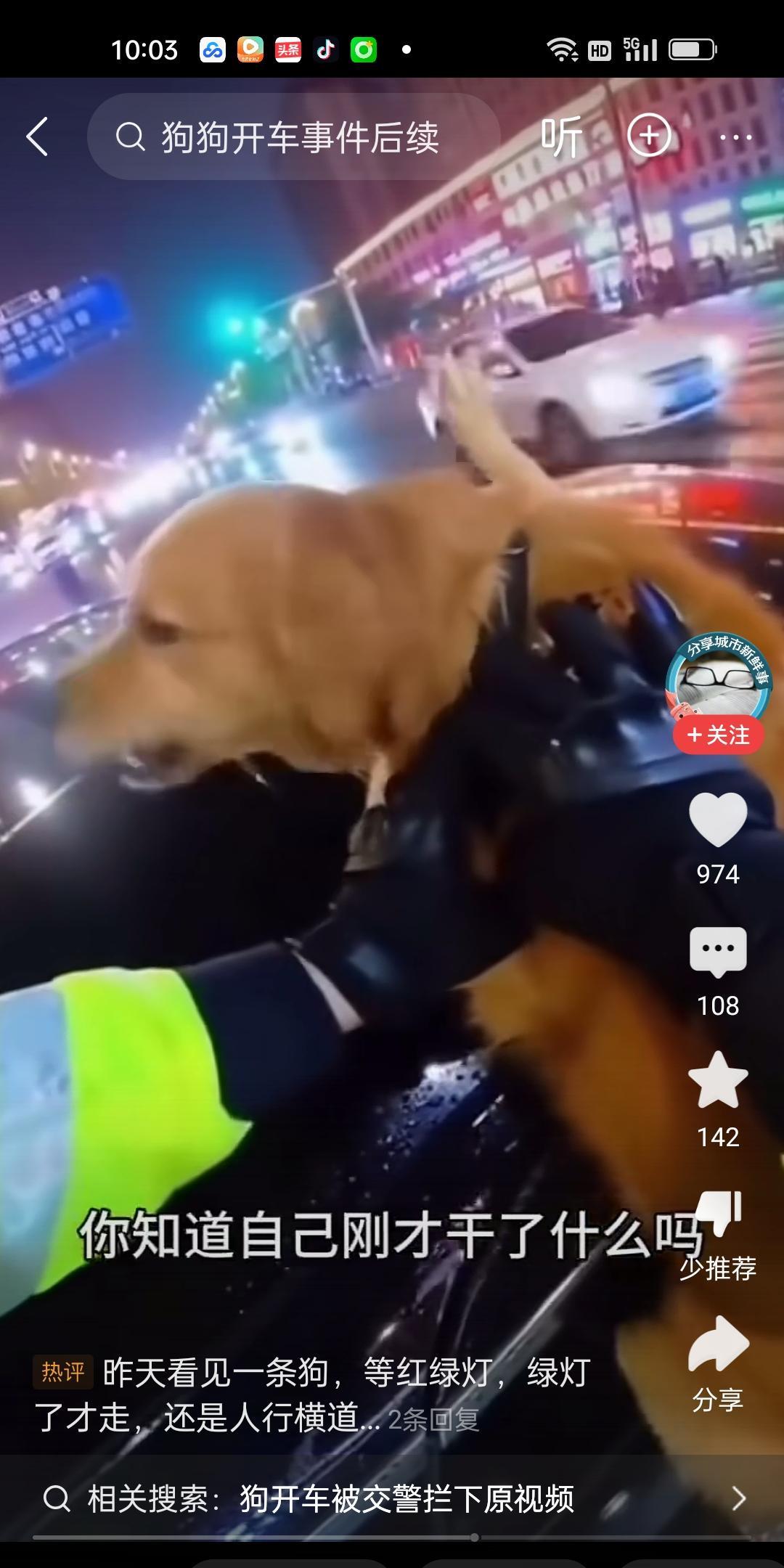 大千世界,无奇不有。狗狗居然把主人的车开出来了。繁华的大街上,帽子叔叔发现狗在把